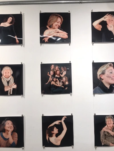 늦은 밤 골목 걷기의 묘미는 조용한 골목에서 자기만의 분위기로 빛나는 공간들을 발견하는 것이다. 낮에는 햇살 아래 고만고만한 모습으로 보였던 곳들이 어둠이 내리면 따뜻한 조명을 밝혀 깊은 내면을 보여준다. 모처럼 쨍쨍한 햇살이 쏟아져 오후 내내 부지런히 돌아다녔던 날, 숙소로 돌아가는 길에 어두운 골목에서 조용히 불 밝힌 아늑한 카페를 발견했다. 오래된 책들로 가득한 책장이 벽을 두르고 있고 군데군데 4인용 테이블과 의자, 소파가 자리 잡고 있어 단조로운 듯 보이면서도, 문틀과 의자, 쿠션, 오래된 라디오 등에 붉은색으로 포인트를 주어 은근한 단호함이 느껴지는 공간이었다. 카페는 크게 입구 쪽의 전시공간, 안쪽 카페, 뒷문을 열고 나서면 펼쳐지는 아담하고 아늑한 정원의 야외석으로 나뉘어 있었다. 식사 시간대라 그런지 손님은 거의 없었고, 야외석에서는 대학생으로 보이는 이들이 차분히 이야기를 나누고 있었다. 전시 공간에서는 여성들의 목소리와 연대를 보여주는 사진전이 진행 중이었다. 다양한 연령대의 여성들이 검은색 옷을 입고 옷 밖으로 드러난 팔과 손등, 어깨 등의 피부에 자신의 목소리를 펜으로 적고 각자의 포즈를 취한 사진들이 삼면을 가득 채웠다. 홀로 찍은 사진, 동료들과 함께 찍은 사진, 가지각색의 포즈와 메시지들, 내면을 향한 듯 차분하면서 유연한 포즈와 생기발랄한 미소를 보는 것만으로도 묘한 해방감이 밀려왔다. 무용 동작처럼 우아한 자세를 취한 여성의 등에는 이런 문구가 적혀 있었다. "A volte la crescita avviene lentamente ma poi arrivano i fiori(때때로 성장은 더디지만, 오고 나면 꽃들이 만발해요.)." 가까운 친구들로 보이는 일곱 명의 여성들은 마치 무적 파워레인저 멤버들이 한데 모여 적을 공격하기 직전에 취하는 포즈를 잡고 각자의 팔에 따로 새겨진 "We, Stand, Together"를 내보이며 부러운 연대감을 자랑했다.