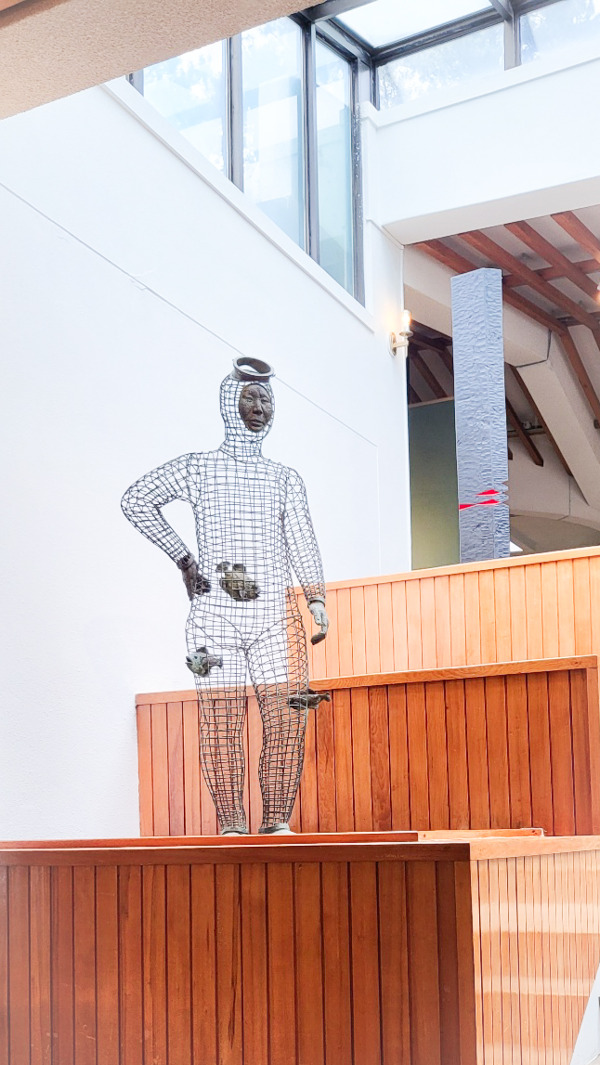 맨 처음 들어서면 제주의 대표적인 상징으로 해녀의 조형물이 시선을 사로잡는다. 철근구조로 몸통을 표현하였으며, 얼굴, 손, 발, 물고기는 제주의 돌인 현무암으로 표현하여 제주의 상징성을 모두 표현한 작품인 것 같다. 그리고 기획 전시실로 발걸음을 옮겨본다.