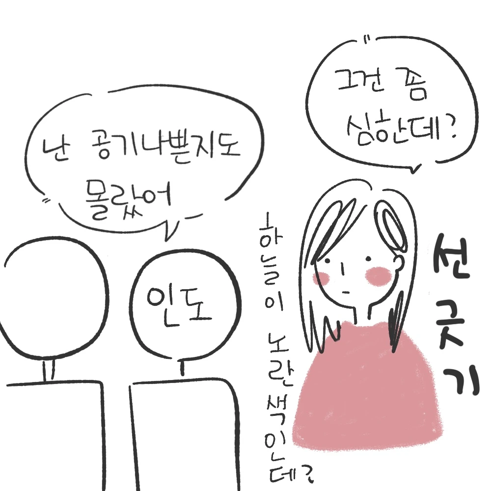 아침에 대기오염 주의 (경고)를 받고 하늘도 노란색이었지만 ‘캐나다 산불이 정말 심각한 가보다고 생각만 했지 나가면 안 되겠구나'라는 생각은 한 번도 들지 않았던 것이다.