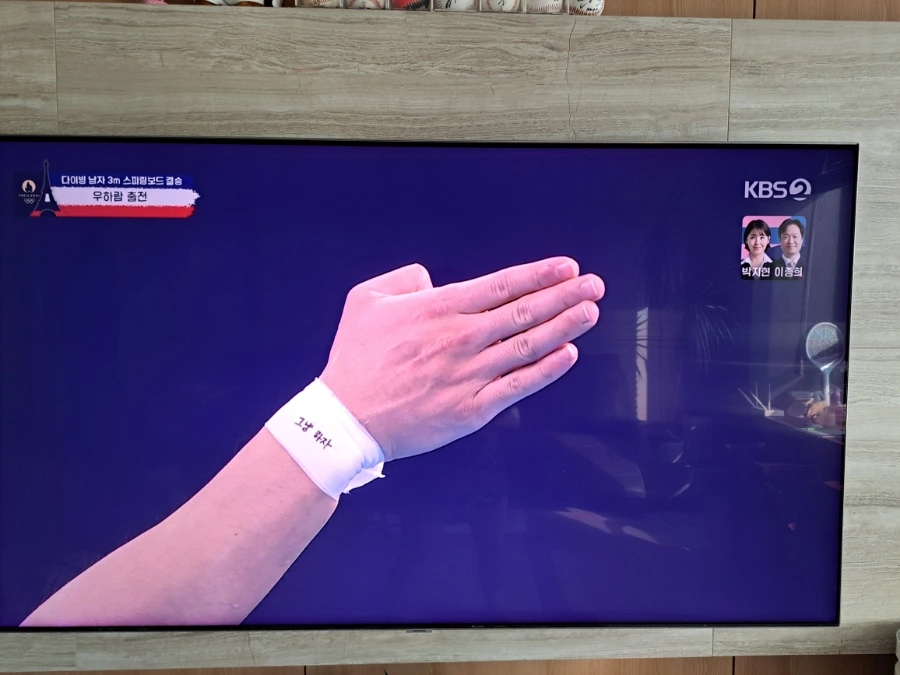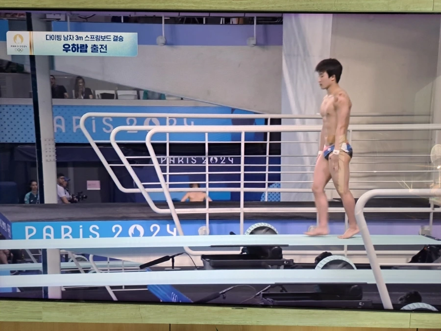 파리올림픽 다이빙 스프링보드 결승에 오른 우하람 선수의 모습에서다. 스프링보드 위를 걸어 나오는 우하람 선수가 보드 끝에 뒤돌아 선 채 두 팔을 들어 올렸다. 그리고 카메라는 그의 손목 붕대에 앵글의 초점을 맞췄다.