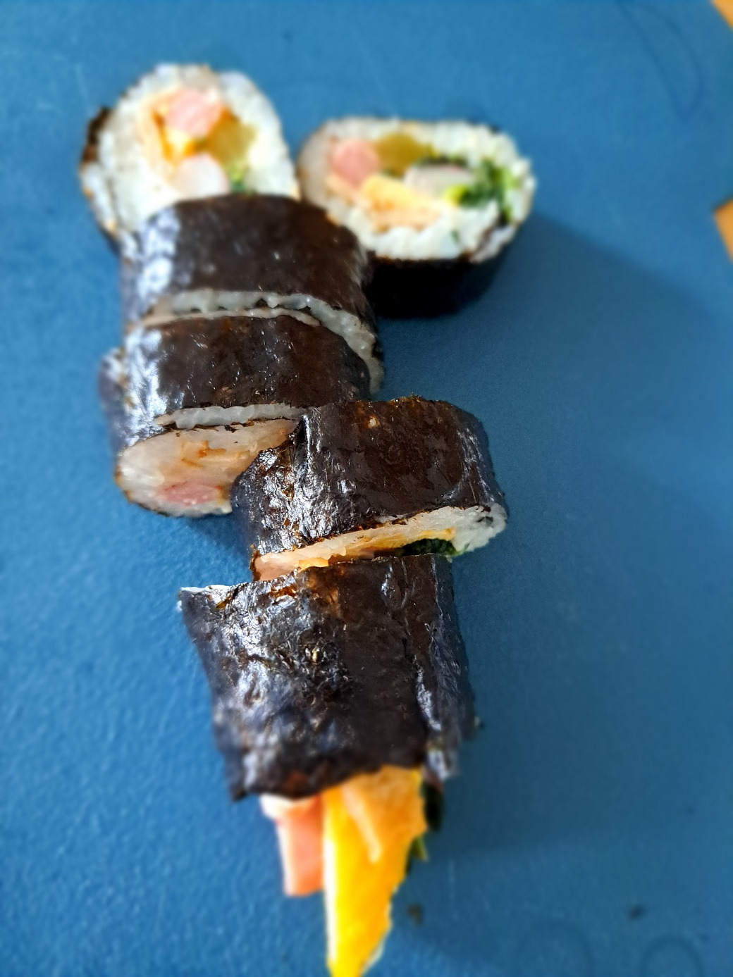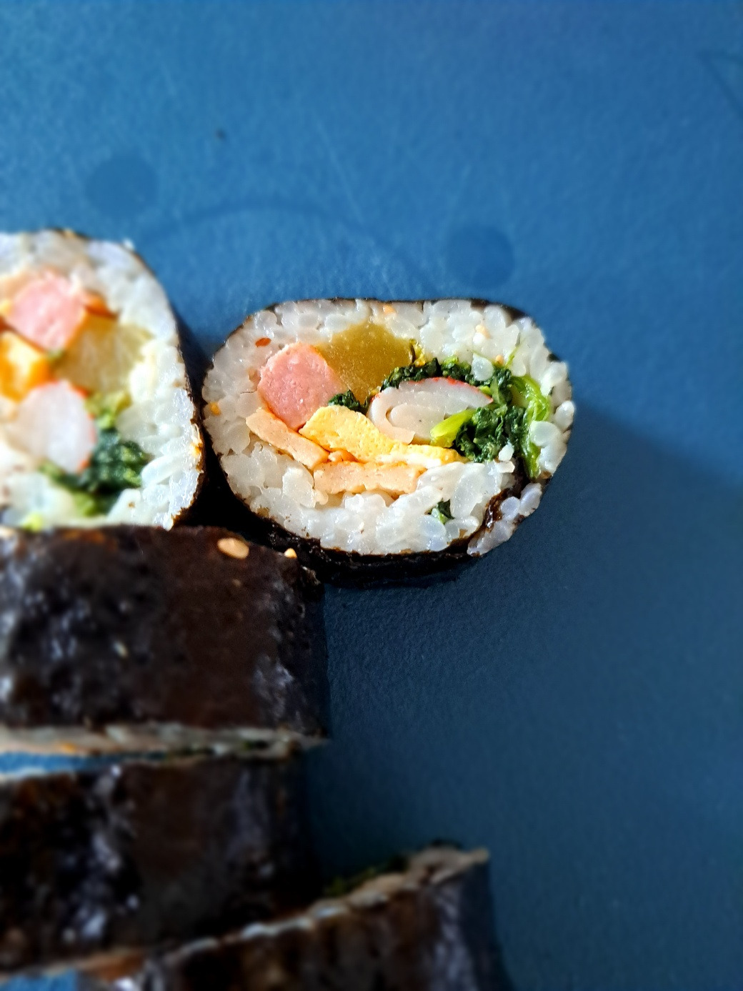 엄마가 하던 김밥은 꼬들꼬들한 밥이 아니었다. 우리가 소풍 가는 날, 층층이 시어른을 모시고 살면서 김밥을 같이 맛보고 나눠야 했기에 어쩌면 어르신들 입에 꼬들한 밥이 안 맞았는지, 아니면 김발로 꾹꾹 누르는 동안 시금치나물의 간이 배어든 탓인지 여하튼 김밥 자체가 조금은 질었다고 할까? 내가 만든 김밥이 딱 그 느낌이었다.