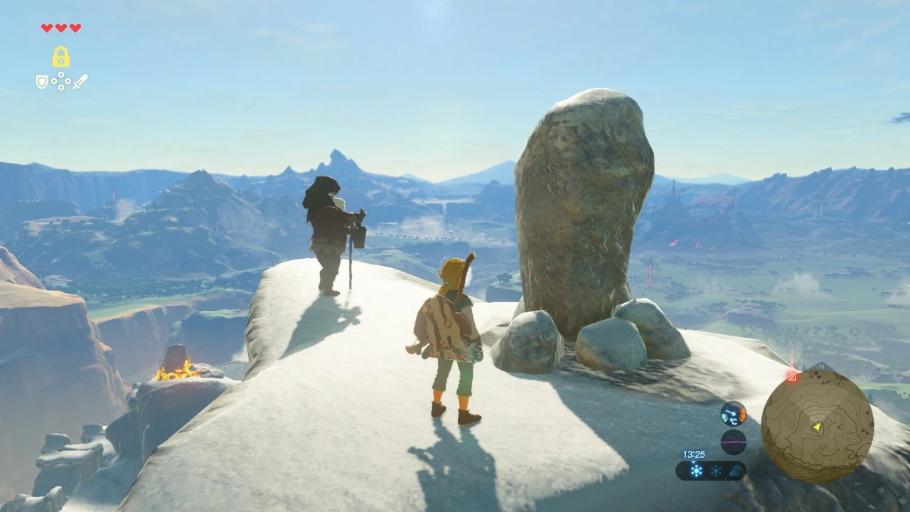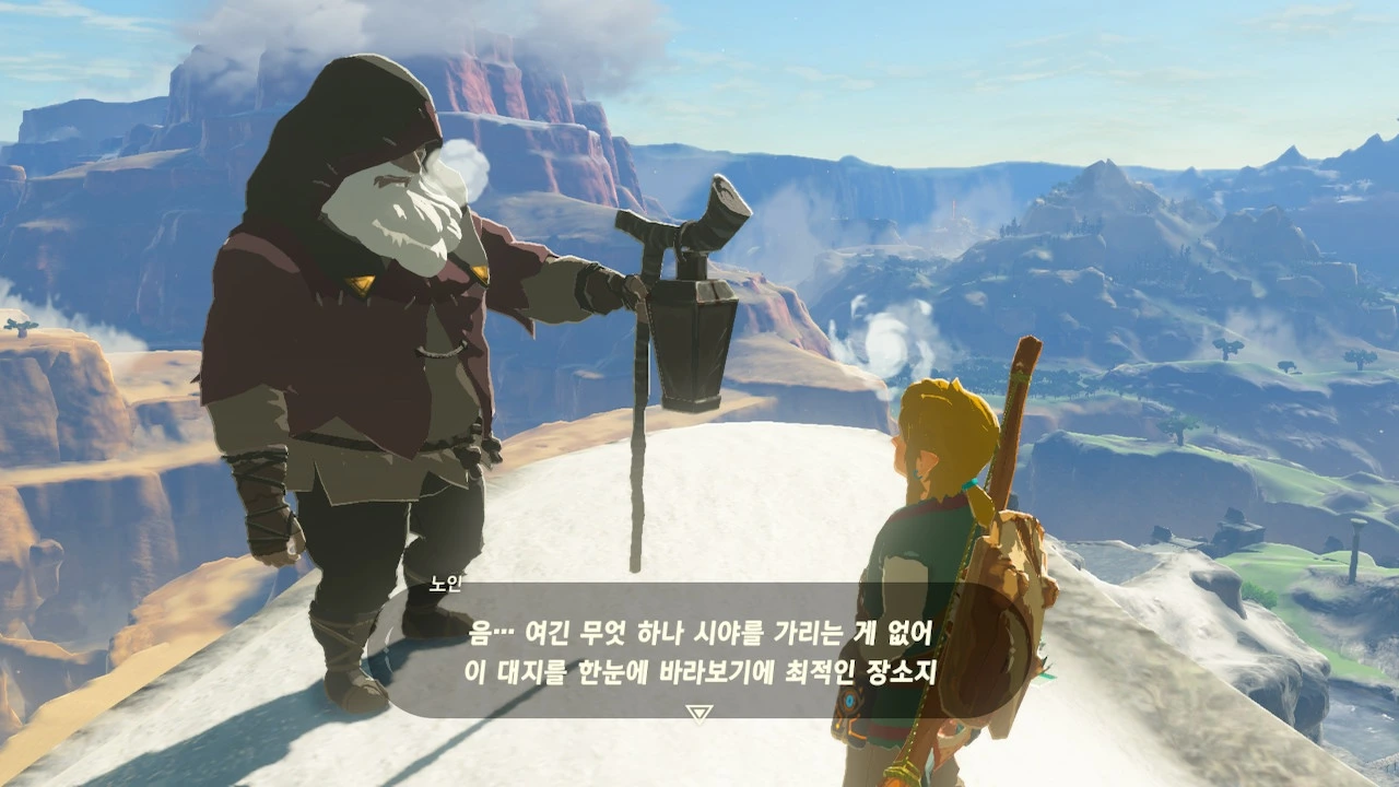 그는 나를 보더니 웃으며 "절경이군." 이라고 말했다. 노인이 바라보는 쪽을 보니 과연. 하이랄성 주변까지 훤히 잘 보이는 위치다.