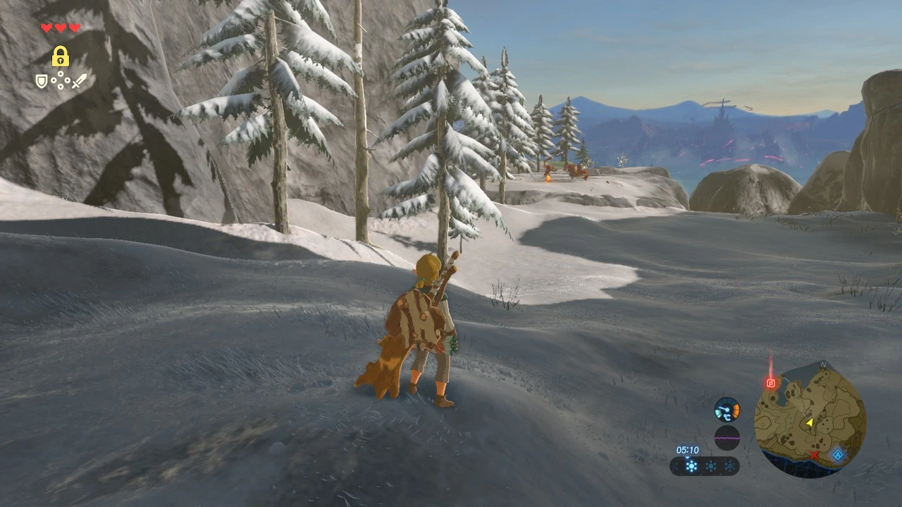 그런 식으로 장애물을 넘고 나자 와.모다이는 기대보다 빨리 만날 수 있었다. 극복의 증표를 받아들고 밖으로 나왔다. 시커 스톤을 켜서 다음 사당의 위치를 다시 확인했다. 주변을 둘러보니 눈이 쌓인 곳으로 내려가야 했다.