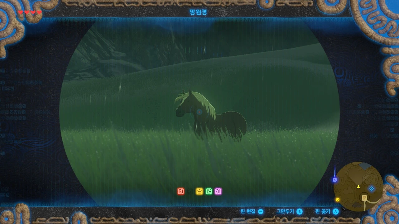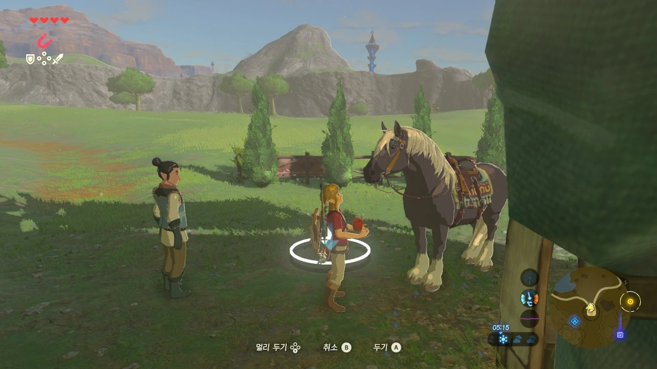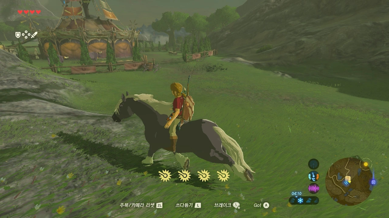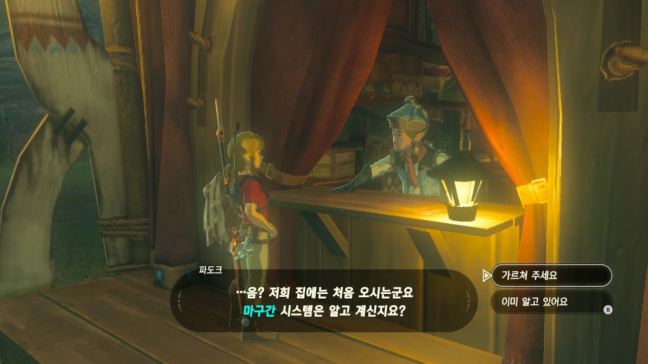 그는 장부를 탁 덮더니 빙그레 웃으며 말했다. 마구간은 여행을 하는 사람들의 말을 대신 맡아 주고 관리를 해 주는 곳이며 안쪽에는 침대가 있어 숙박도 가능한 곳이다. 숙박을 하려면 마구간 텐트 안으로 들어와서 다른 카운터에 말을 걸면 가능하다고 했다. 하이랄 곳곳에는 마구간이 있는데, 이 곳에 말을 맡기면 다른 마구간에서도 자신의 말을 찾아 길을 떠날 수 있다고 한다. 엄청 편리하지 않냐면서, 다소 신나 보이는 마구간 주인은 내게 야생마 이야기를 꺼냈다.