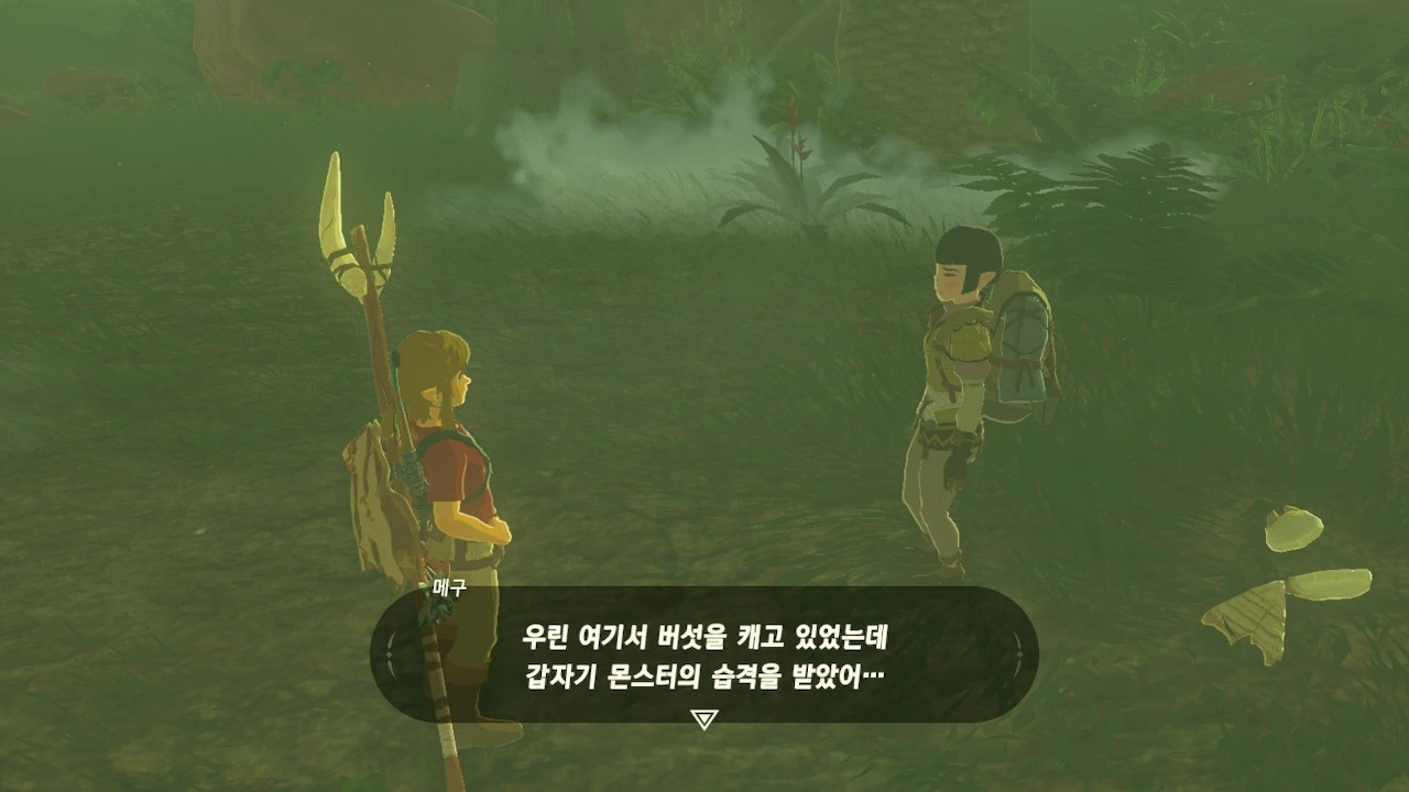 "우린 여기서 버섯을 캐고 있었는데 갑자기 몬스터의 습격을 받았어..."