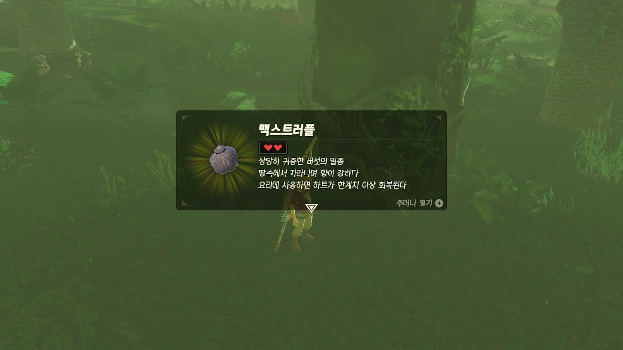 맥스트러플은 상당히 귀중한 버섯 중 하나이며 땅속에서 자라난다는 특이한 버섯이다. 요리에 사용하면 생명력의 회복치가 매우 높다는 설명에 '오' 감탄했다. 깊은 땅 속 흙에서 나는 것 같은 묘한 향은 농도가 짙었는데, 과연 요리를 하면 어떤 맛이 날까?