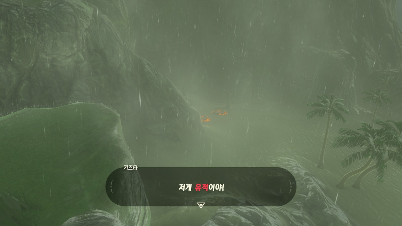 비가 내려서 잘 보이지는 않았지만, 뭔가 시련의 사당과 관련이 있는 것 같았다. 내가 유적이 있는 장소를 보고 있자, 키즈타는 자기는 이만 가 보겠다며 사라졌다.