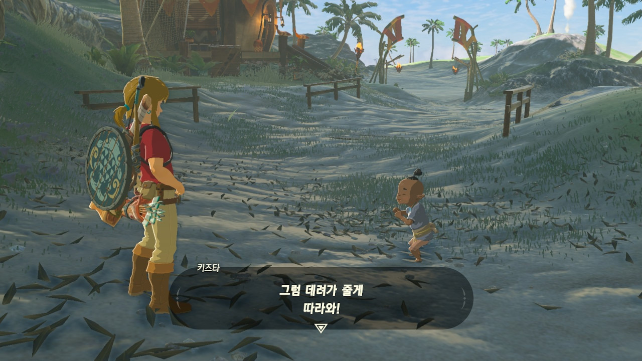 승낙을 하고 나니 사바카는 잘 부탁한다며 집으로 돌아갔다. 지금 당장 아라이소 해안을 갈까, 어쩔까 하는데 왠 꼬마아이가 해안을 열심히 달리고 있다. 이 꼬마, 혹시 사바카의 또 다른 아들인가? 머리를 정수리에 모아 묶은 모습이 귀여워 인사를 했다.