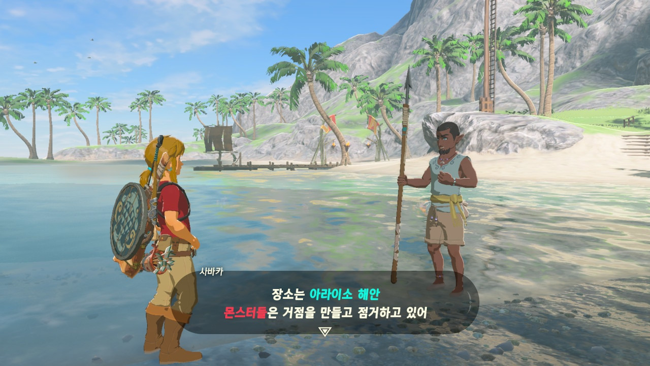 "장소는 '아라이소 해안'. 몬스터들은 거점을 만들고 점거하고 있어."