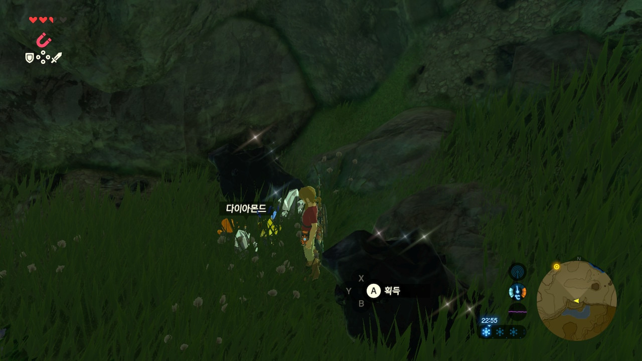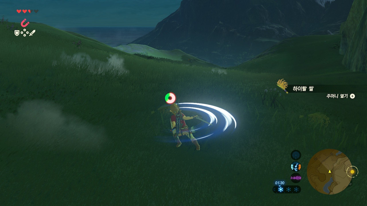 동굴에서 발견한 보석에 신이 나서, 양손검을 꺼내 들고 신나게 풀을 벴다. 그런데 어라?... 의외로 '하이랄 쌀을 얻었다. 쌀은 마을에서 재배를 해야 구할 수 있는 작물인 줄 알았는데... 이렇게 들판에서도 자라는구나.