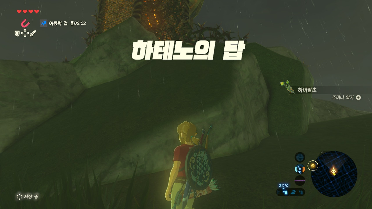 탑에 가까이 가 보았다. 시커 스톤에 '하테노의 탑'이라는 메시지가 떴다.