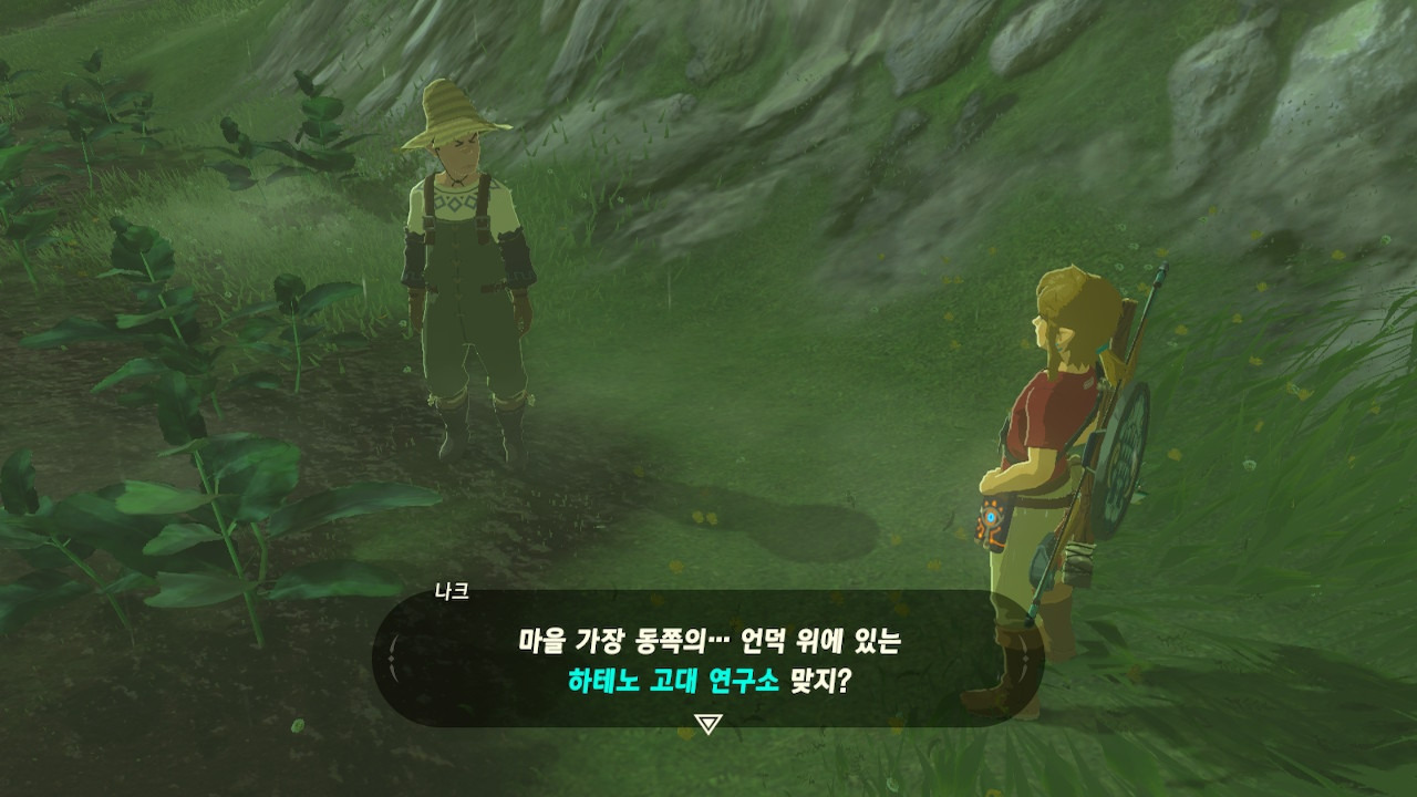 염색을 잘 한다는 세지 씨가 궁금해졌지만, 그 다음 나크가 말했던 '아주 이상한 곳'에 대해서 물어봤다. 나크는 이어지는 내 질문에 귀찮다는 기색도 없이 '하테노 고대 연구소'에 대해 알려주었다. 하테노 고대 연구소는 하이랄 왕국의 평화를 위해 매일 연구에 힘쓰고 있는 곳으로(정말? 뭔가 거창하네...) 그 곳 소장님이 아이를 싫어하기 때문에 오히려 마을의 꼬마들이 하테노 고대 연구소에 몰래 구경을 하러 간다고 하였다.