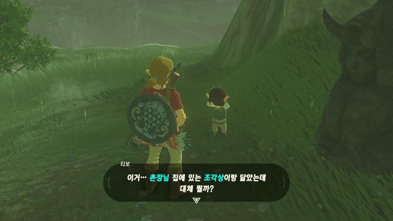 "이거... 촌장님 집에 있는 조각상이랑 닮았는데 대체 뭘까?"