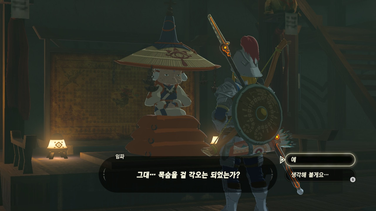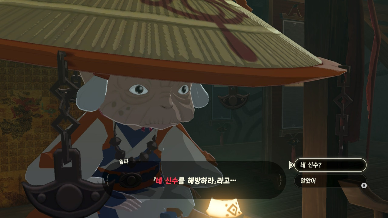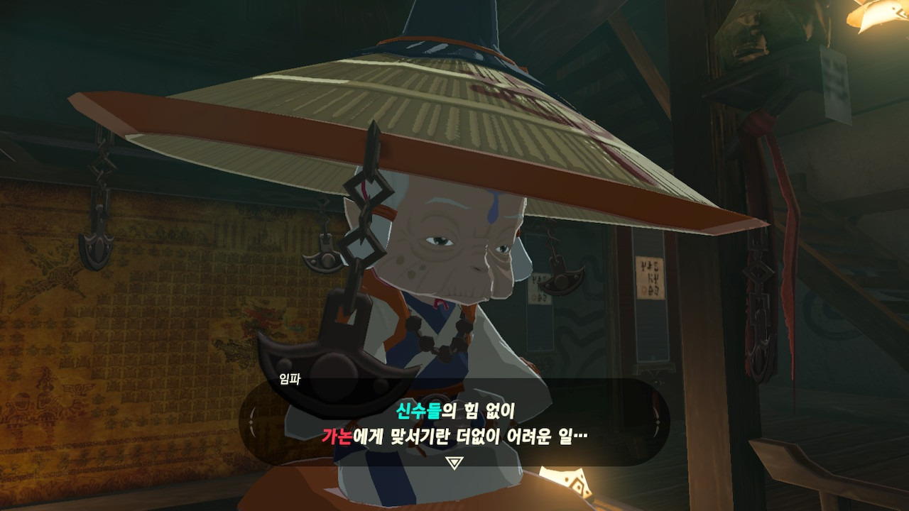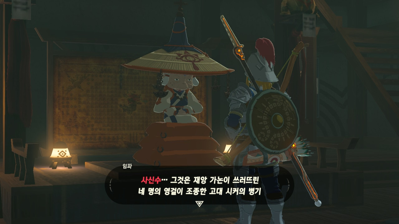 임파는 4신수에 대해 설명해 주면서, 재앙 가논의 힘이 대단하기 때문에 4신수를 다시 되찾아 활용할 수 있어야 최종적으로 내가 재앙 가논과 맞설 수 있을 것이라고 했다. 4신수의 도움이 없다는 건 생각할 수 없다며 한숨을 쉬는 임파의 목소리는 꽤 잠겨 있었다.