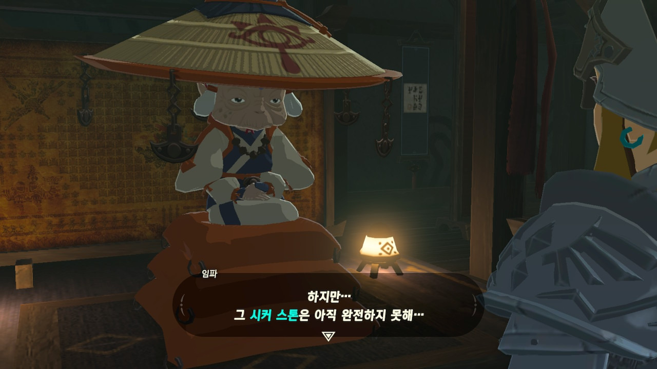 "...음... 하지만... 그 시커 스톤은 아직 완전하지 못해... 젤다님이 남기신 그것은 길잡이가 되고... 그리고 그대의 기억 그 자체이니... 활용하려면 시커 스톤을 손봐야 할 터인데...."