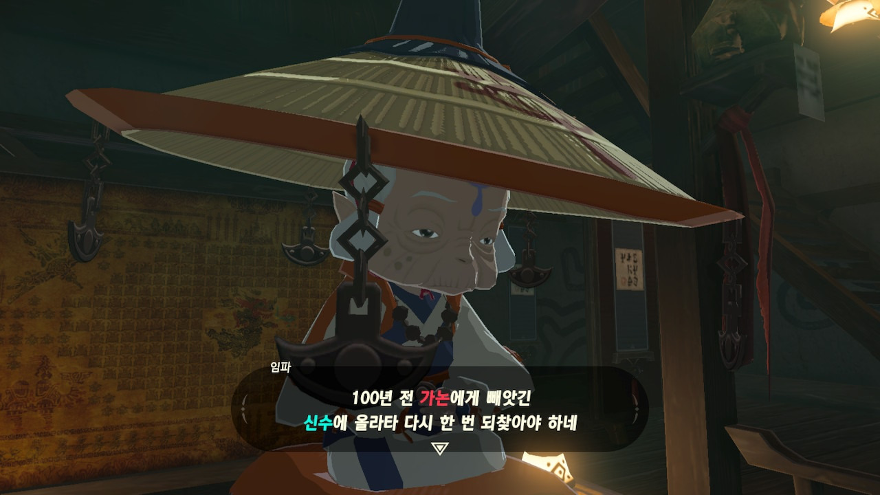 "100년 전 가논에게 빼앗긴 신수에 다시 올라타야 해.. 능력이 되는 자만이 신수를 조종할 수 있어... 아무나 신수에 탈 수 없으니 링크, 그걸 그대가 해내야 할 걸세... "