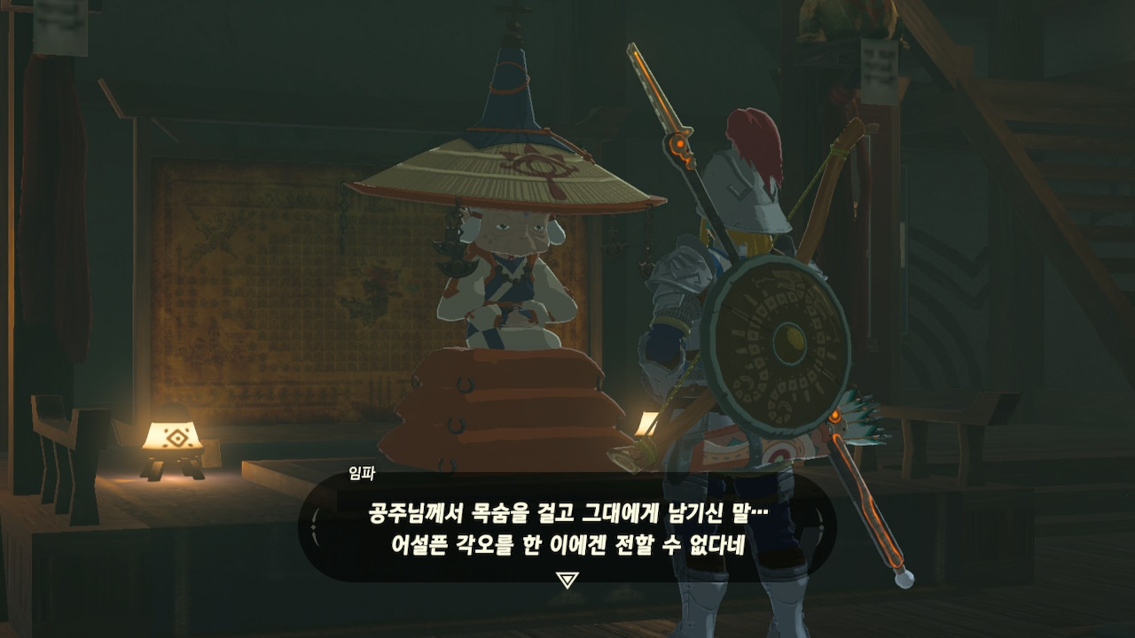 이러한 잘못이 다시는 반복되면 안 되리라... 그래서 젤다 공주는 재앙 가논에게 가기 전, 임파를 만나 이 말을 전하라 하였다는 것이다. 그 말은....