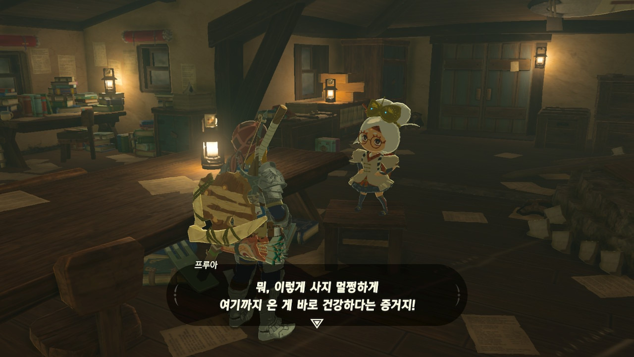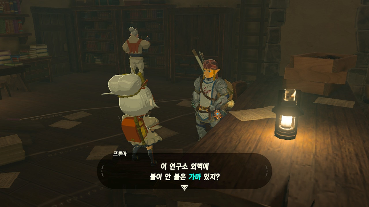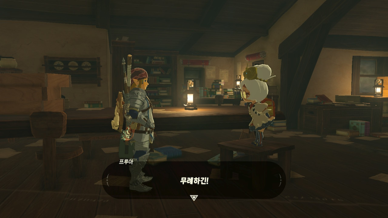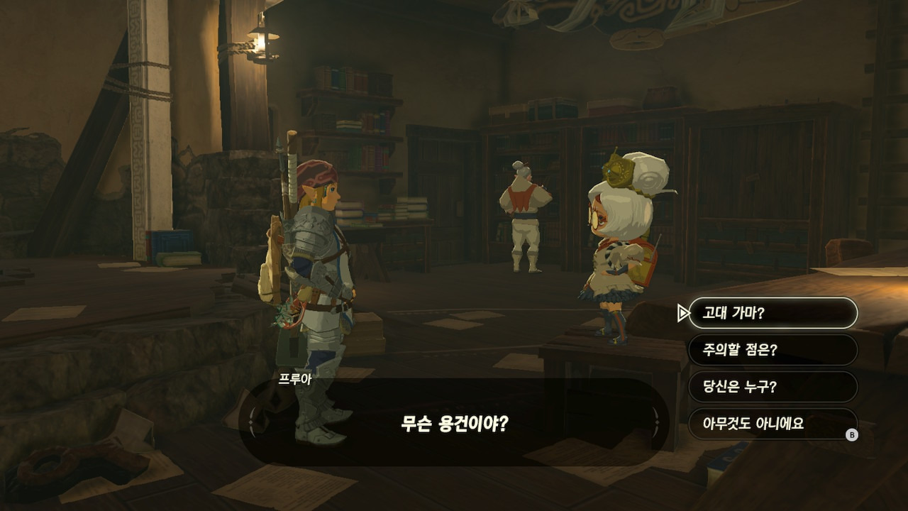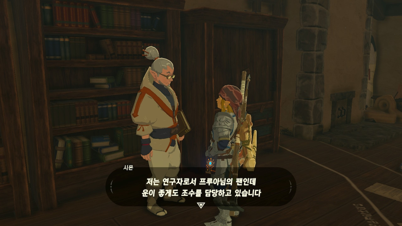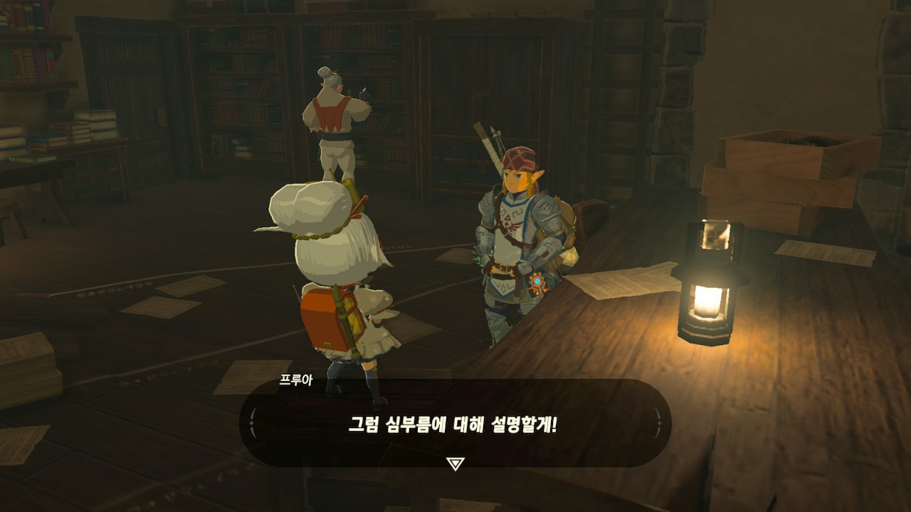 그녀는 다른 건 됐고, 본론으로 들어가서 시커 스톤 기능 회복에 대한 이야기를 하자고 했다. 그러면서, 내가 다시 힘을 축적하고 있는 재앙 가논을 쓰러뜨리고 젤다 공주를 구출하겠다는 의지와 각오가 충분하다면, 자기가 얼마든지 도와 줄 의사가 있으며, 시커 스톤의 기본 아이템을 부활시켜 줄 수 있다는 이야기도 했다.