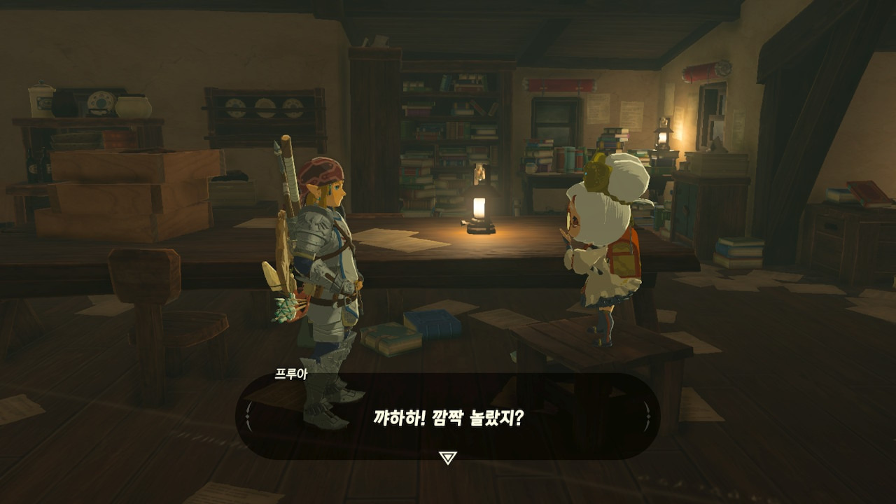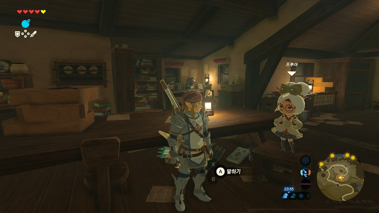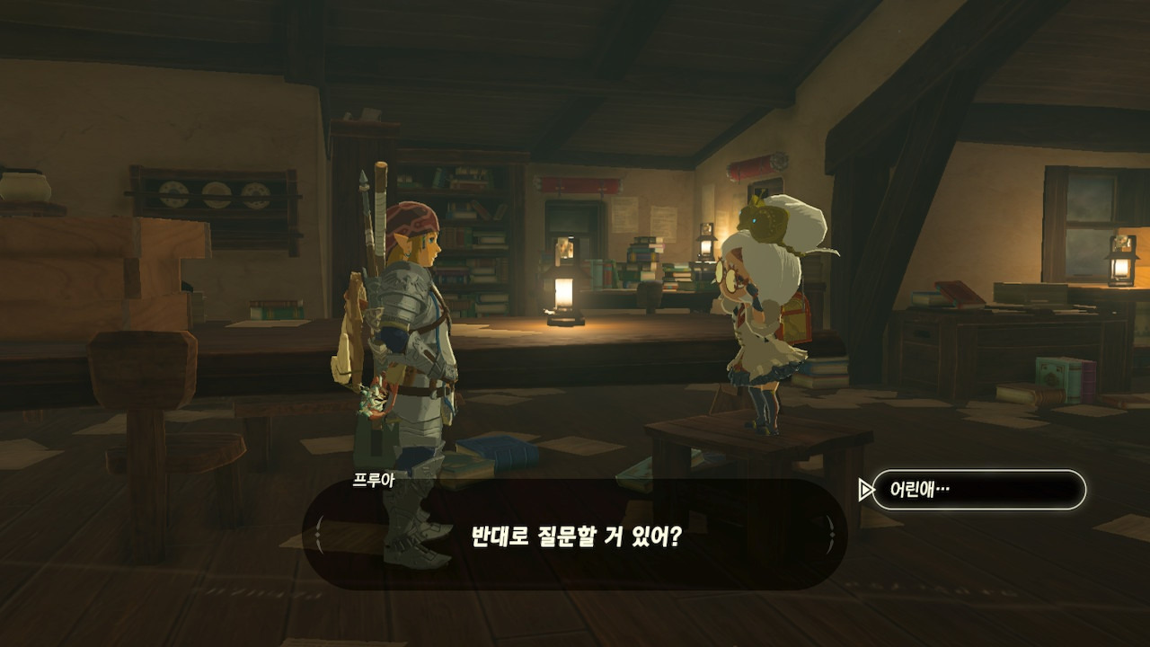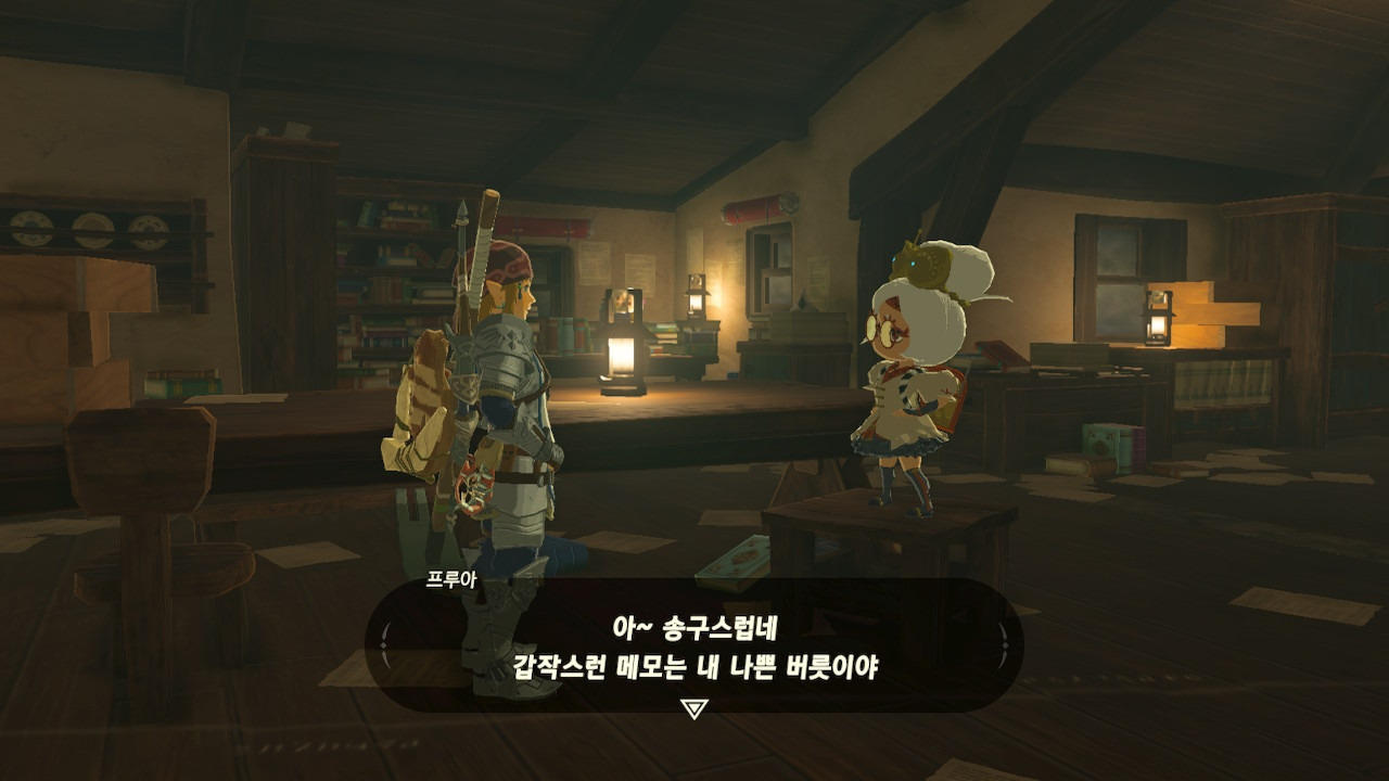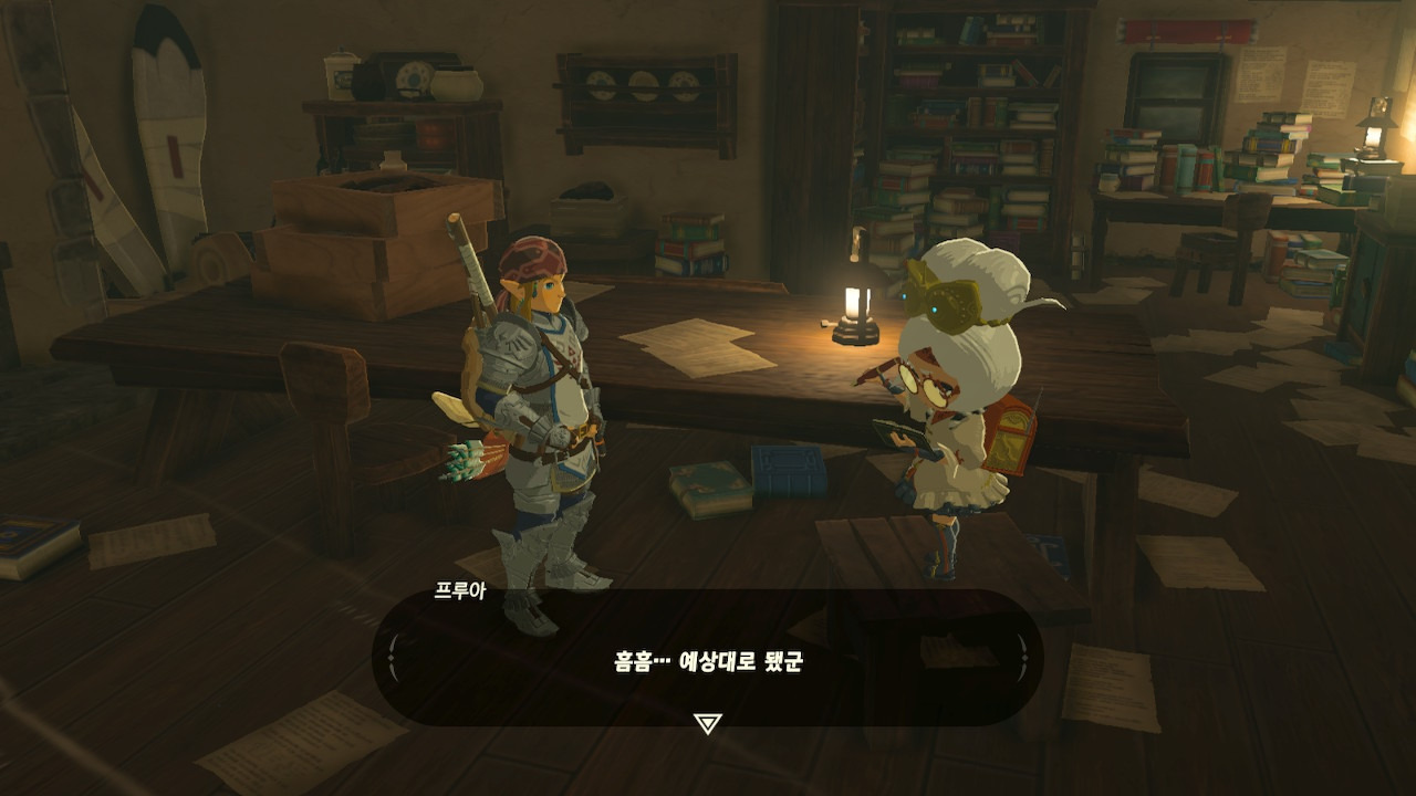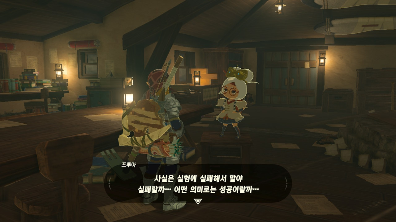 그녀는 다른 건 됐고, 본론으로 들어가서 시커 스톤 기능 회복에 대한 이야기를 하자고 했다. 그러면서, 내가 다시 힘을 축적하고 있는 재앙 가논을 쓰러뜨리고 젤다 공주를 구출하겠다는 의지와 각오가 충분하다면, 자기가 얼마든지 도와 줄 의사가 있으며, 시커 스톤의 기본 아이템을 부활시켜 줄 수 있다는 이야기도 했다.