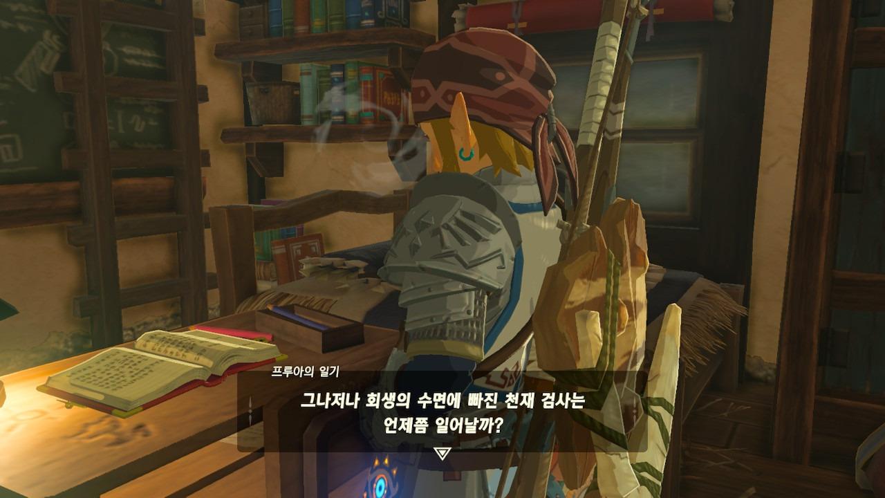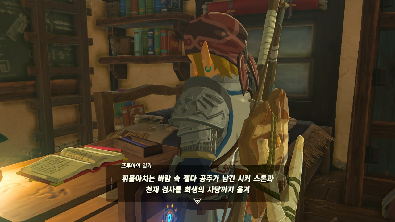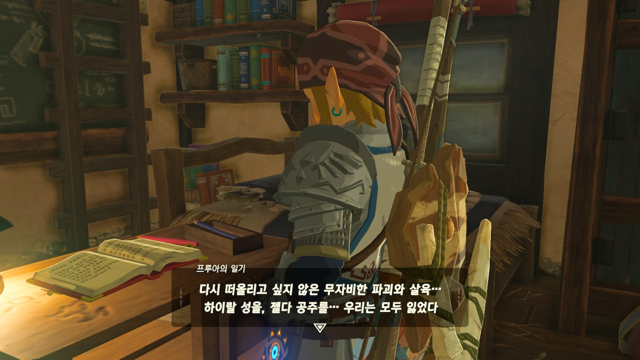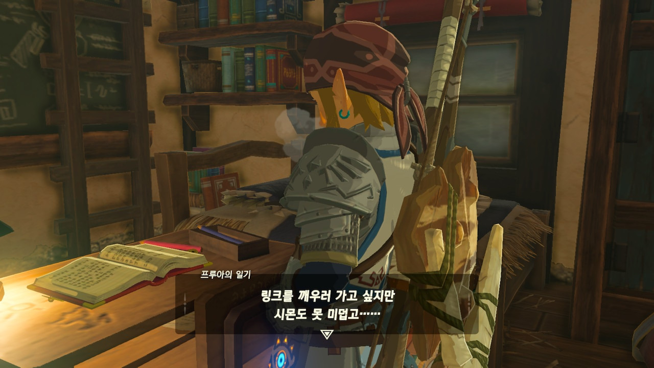 나는 하이랄 성 역사상 최연소로 승격한 검사였으며, 능력을 인정받아 젤다 공주의 직속 호위 기사로 발탁되었다고 했다. 으음.... 그게 최연소였던가? 성에서 검사로 인정받는 것은 쉬운 일은 아니었을 것이다..그러니 '천재'라고 했겠지....? 아... 프루아의 일기를 읽고 있으니 조금씩 뭔가가 기억이 나는 것 같기도 하고, 아닌 것 같기도 했다. 어쨌거나 내가 그런 사람이라니, 믿을 수가 없었다... 단지 기억을 잃어서 그런 걸까?