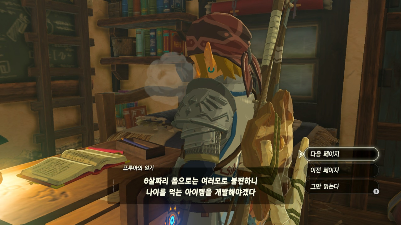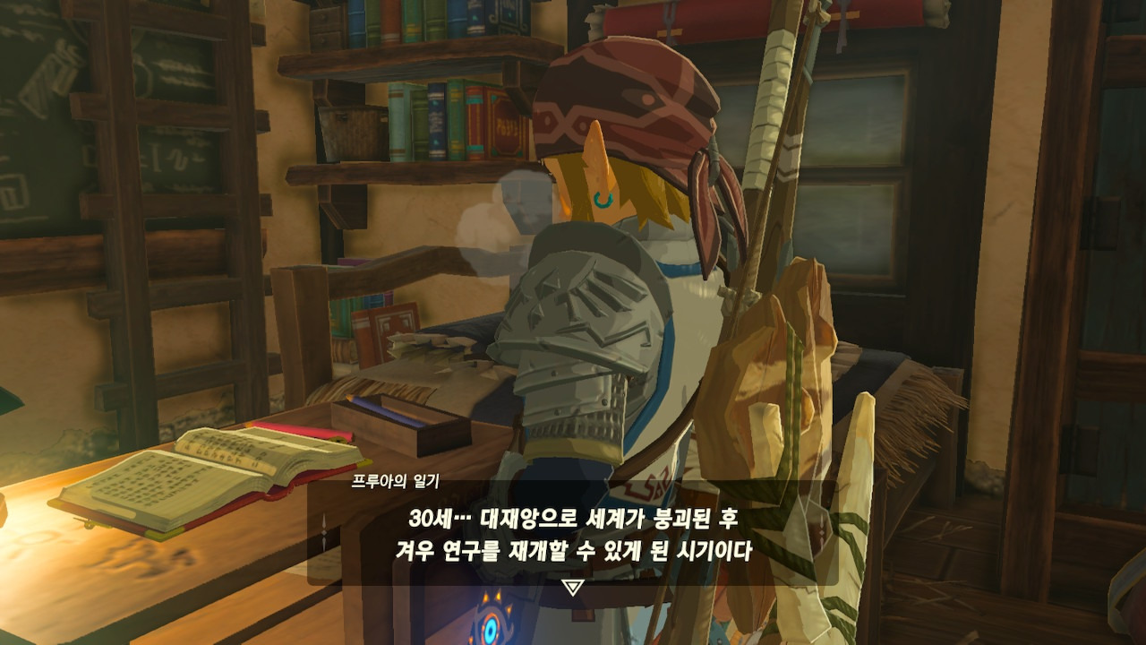 프루아는 자신이 온 힘을 다해 쏟은 연구가 재앙 가논을 토벌하고 젤다 공주를 구하는 데 유용하게 쓰이기를 바라고 있었다. 프루아는 젤다 공주와 아주 각별한 사이였나보다...