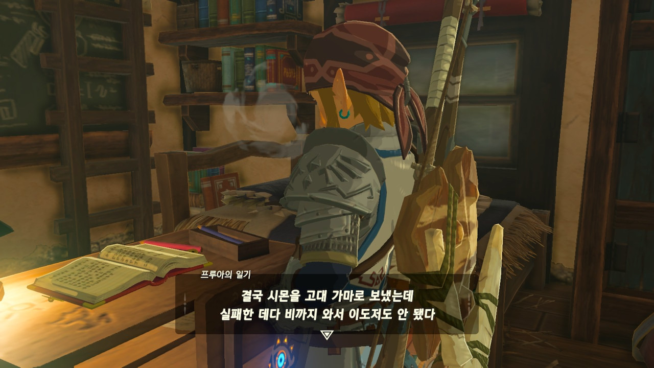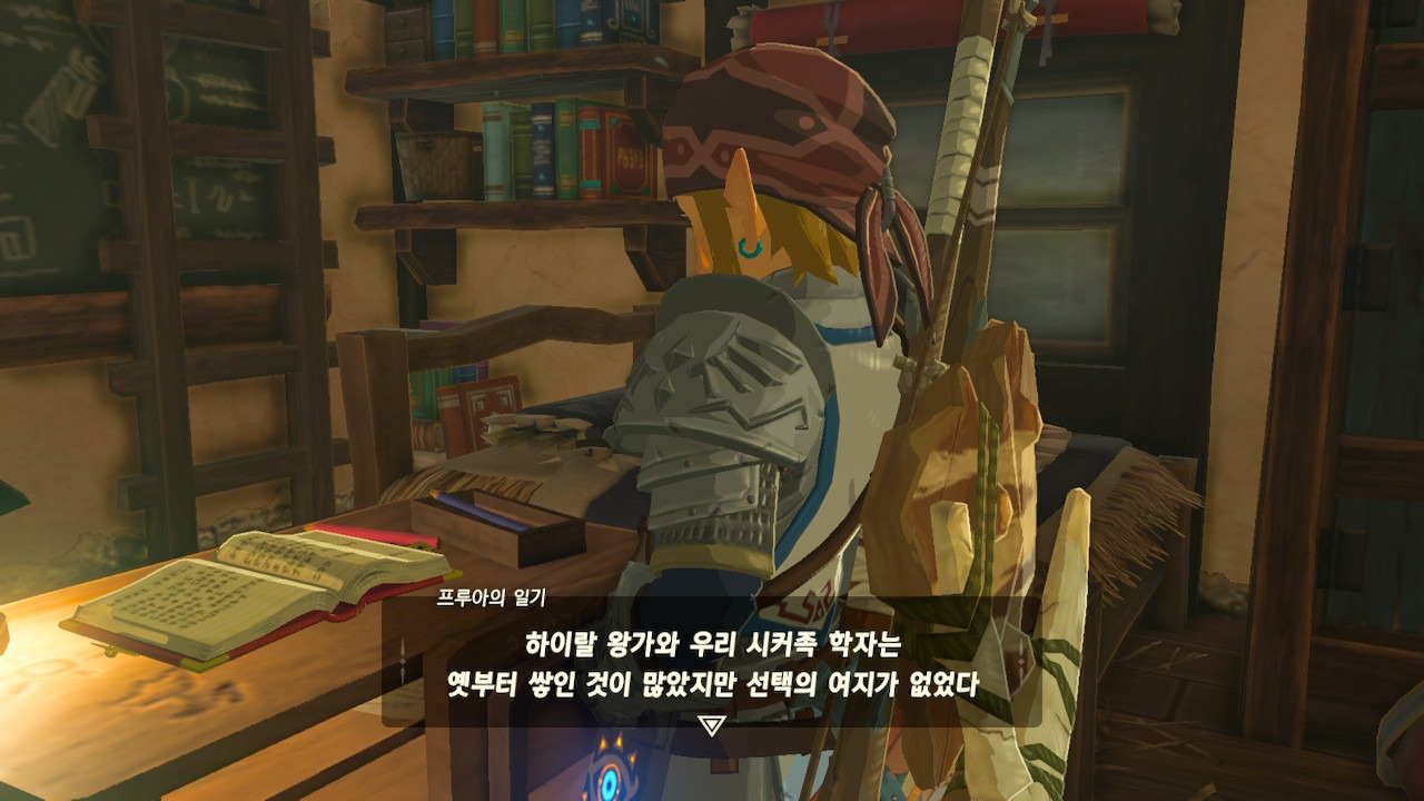 프루아는 실려온 나를 그대로 둘 수 없었다고 적었다. 젤다 공주의 부탁대로 할 수 밖에 없었다고 했는데... 마음에 걸리는 문장도 있었다. 그것은 '하이랄 왕가와 우리 시커족 학자는 옛부터 쌓인 것이 많았지만' 이었다. 프루아는 시커족 학자... 그 문장을 읽으니, 카카리코 마을의 보가드가 나에게 해 주었던 이야기가 생각났다. 본래 시커족의 뛰어난 기술을 묻게 한 것은 하이랄 왕가였다는....