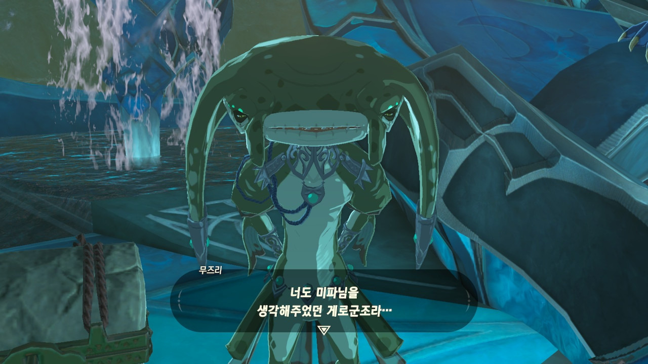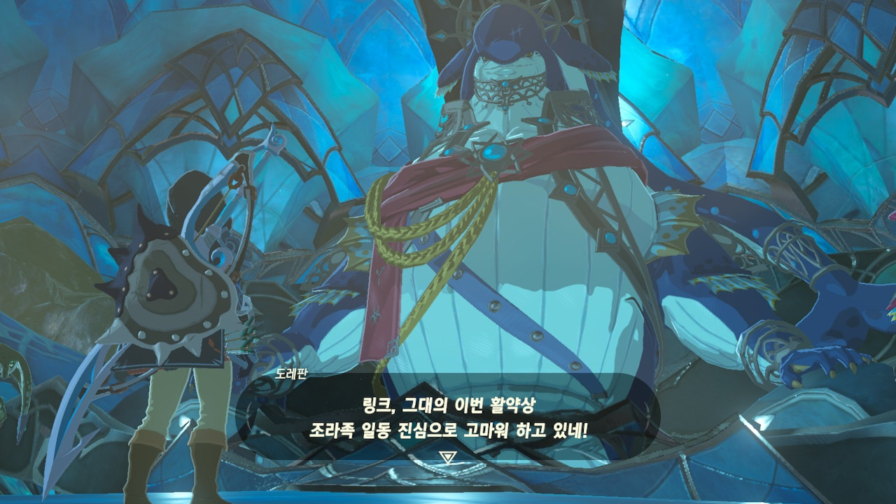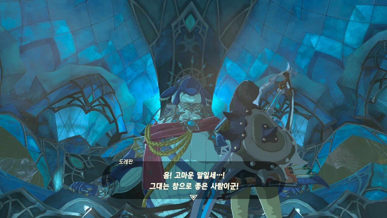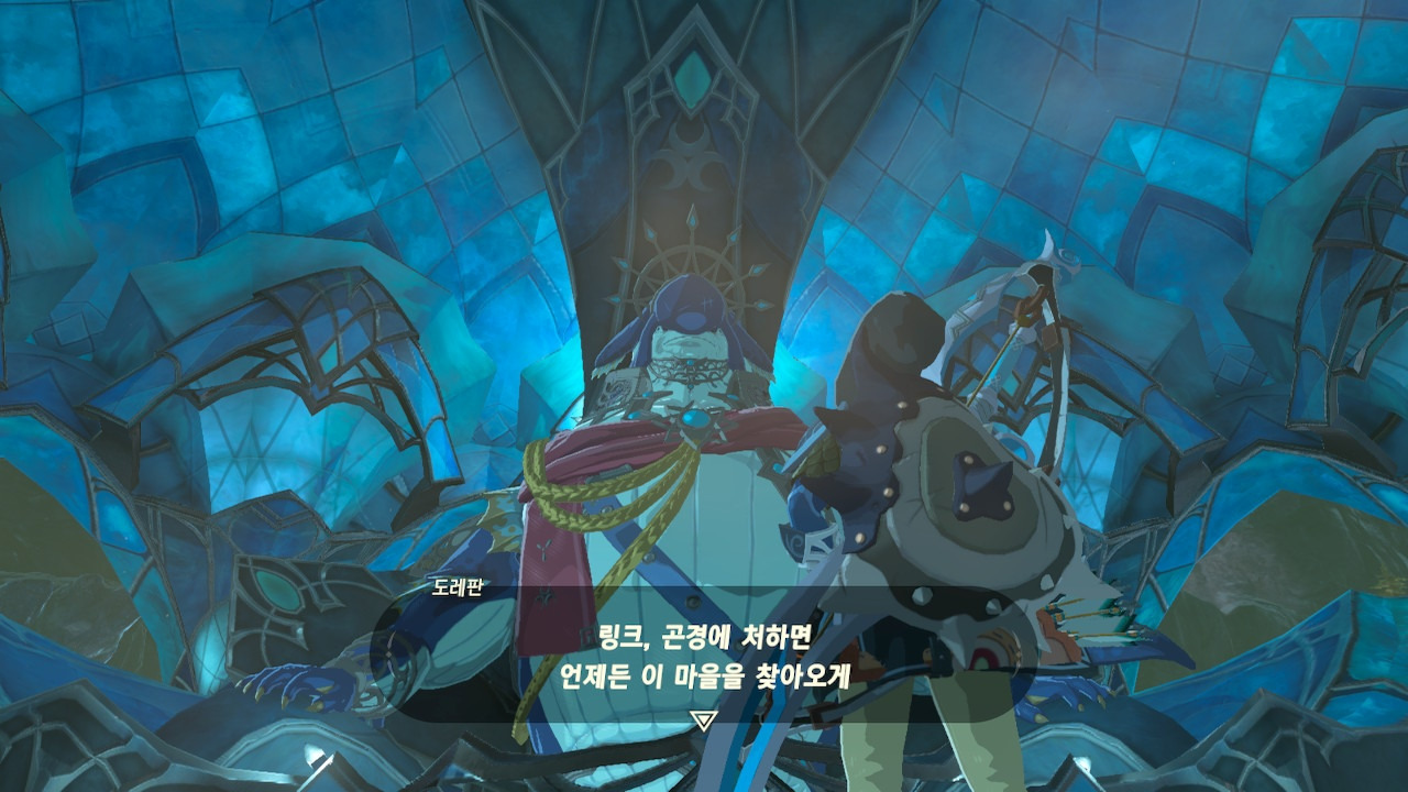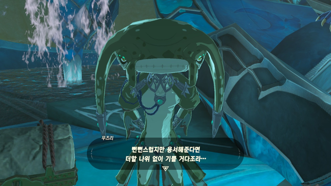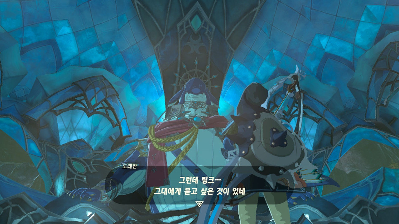 "그런데 링크... 그대에게 묻고 싶은 것이 있네. 그대는 물의 신수 바.루타의 몸에서 무사히 생환했지."