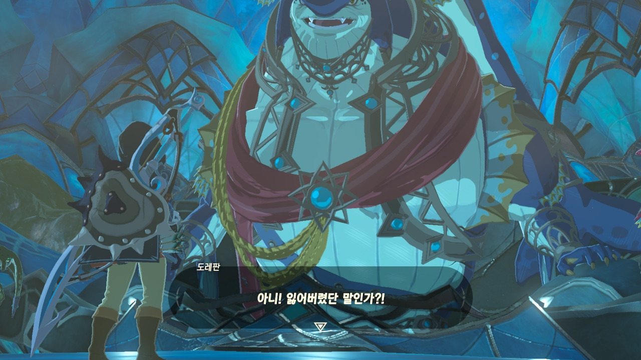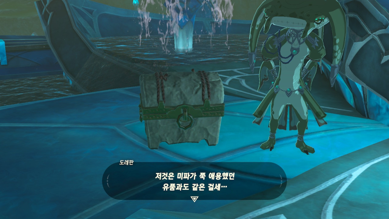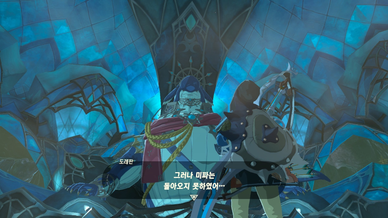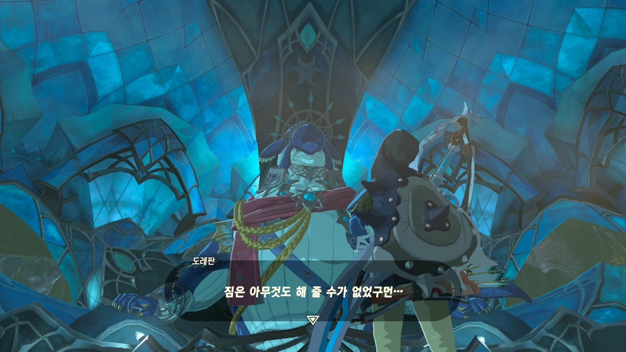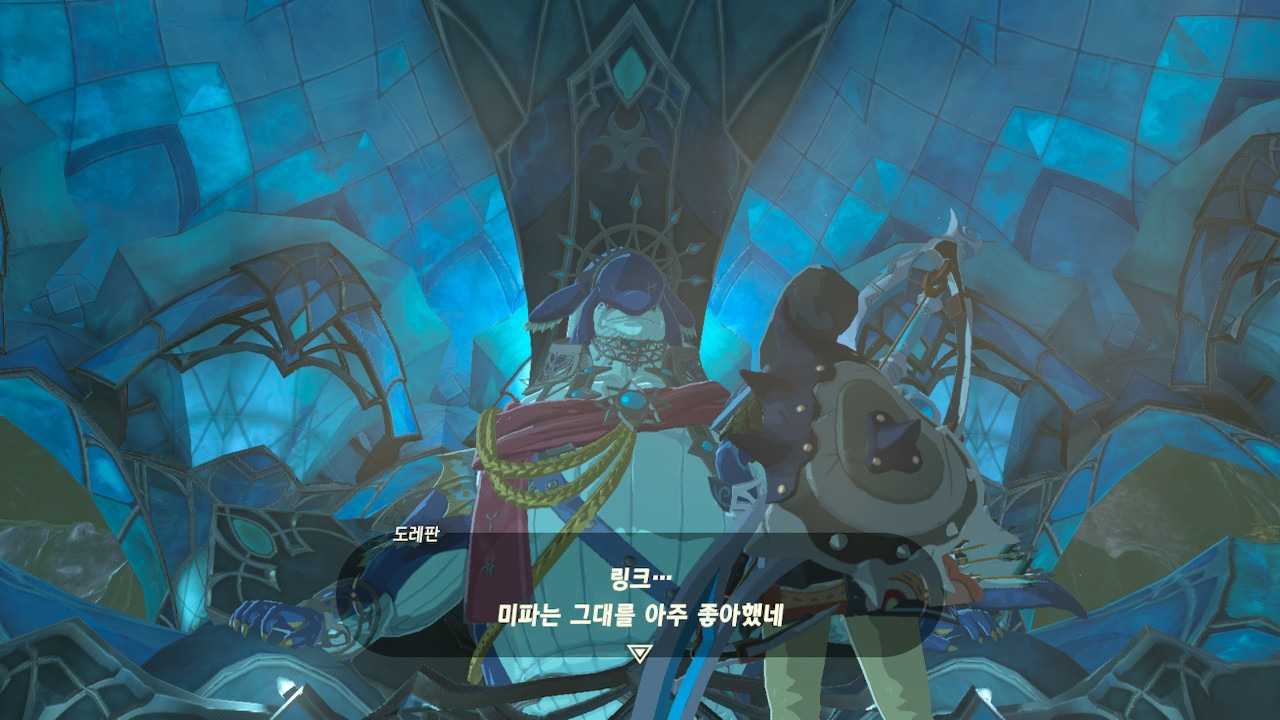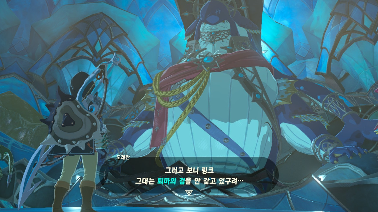 "그런데 링크... 그대에게 묻고 싶은 것이 있네. 그대는 물의 신수 바.루타의 몸에서 무사히 생환했지."