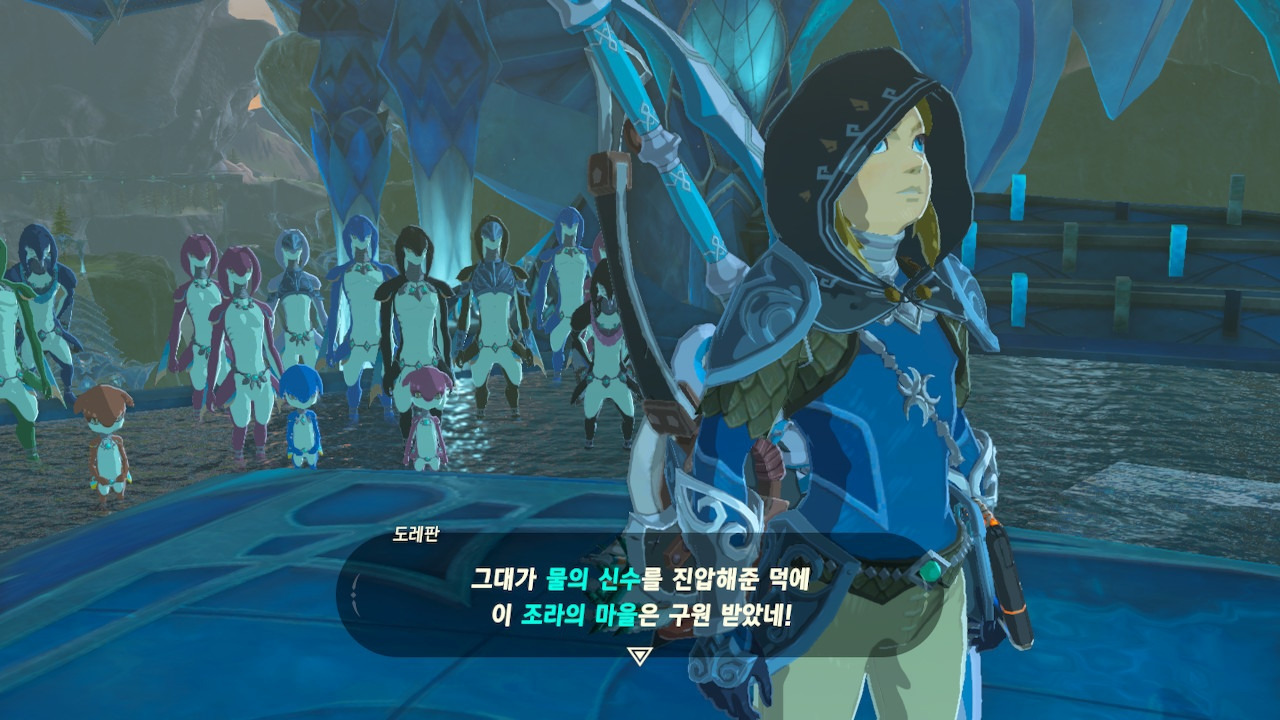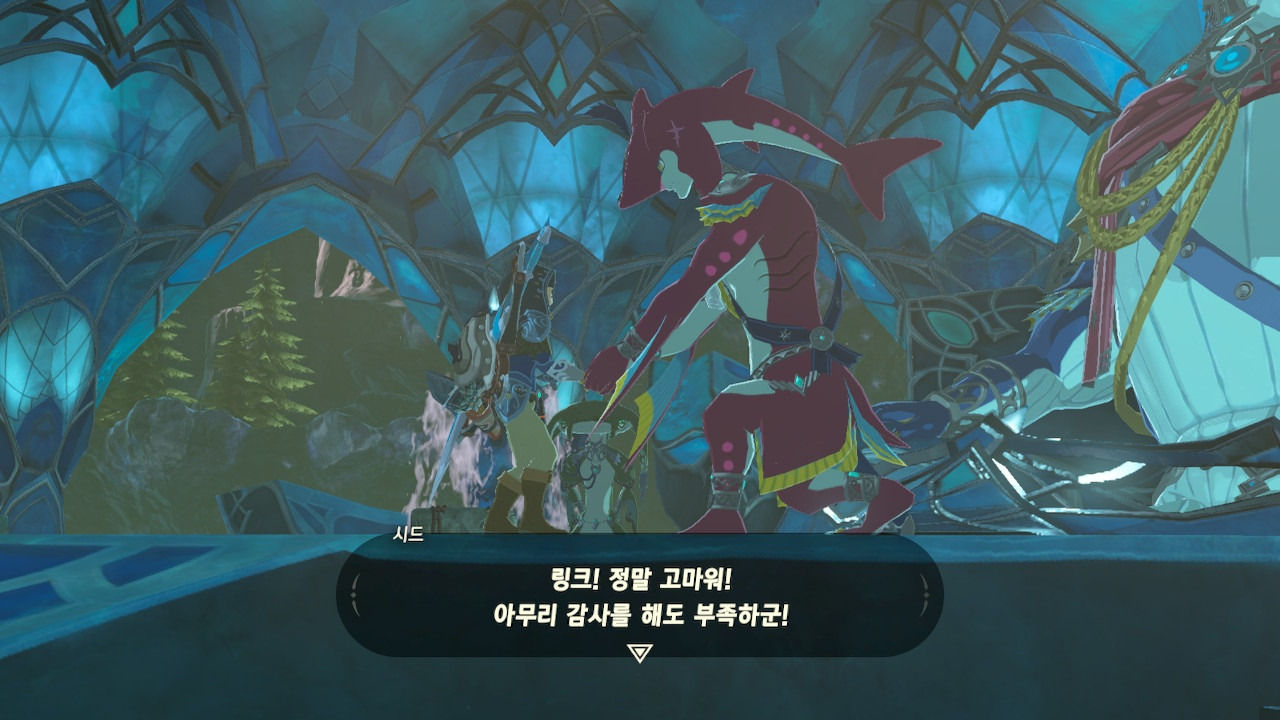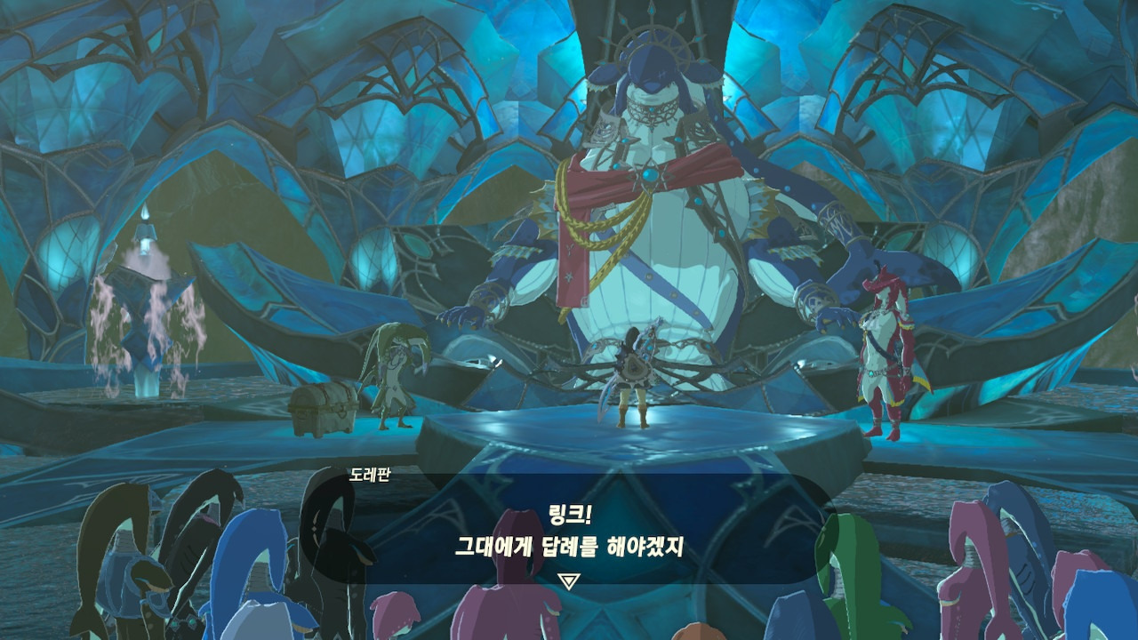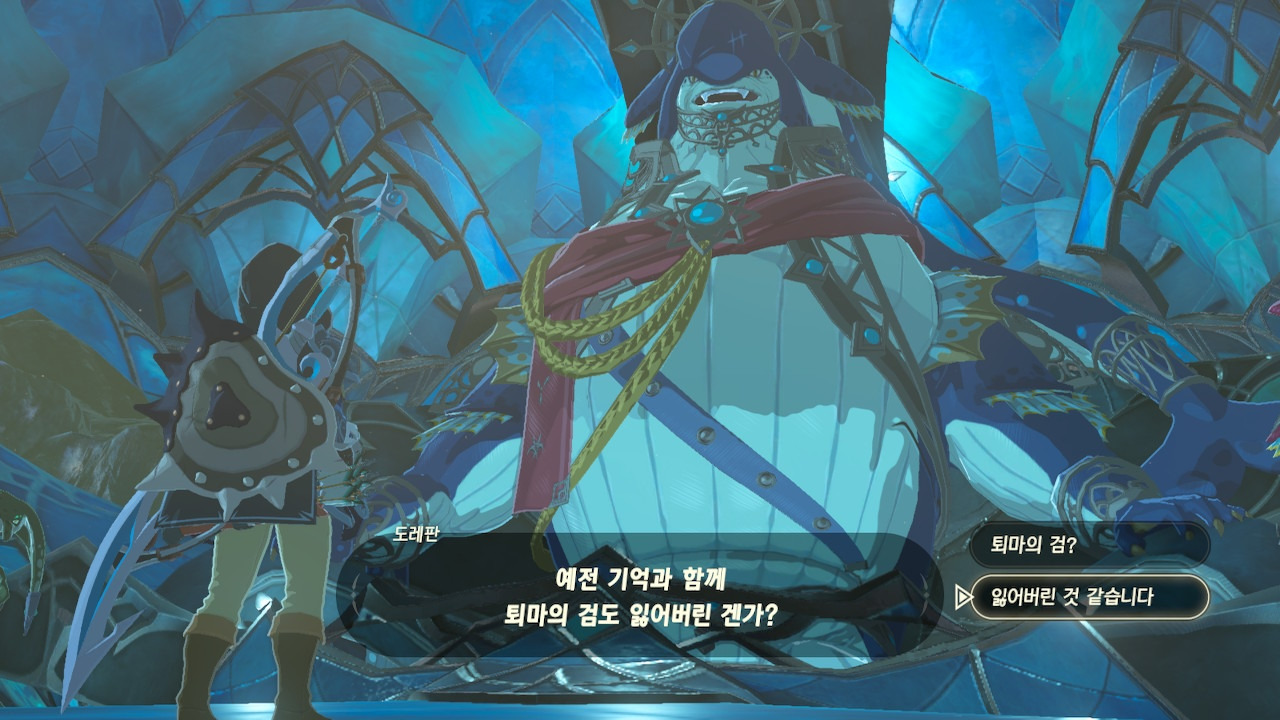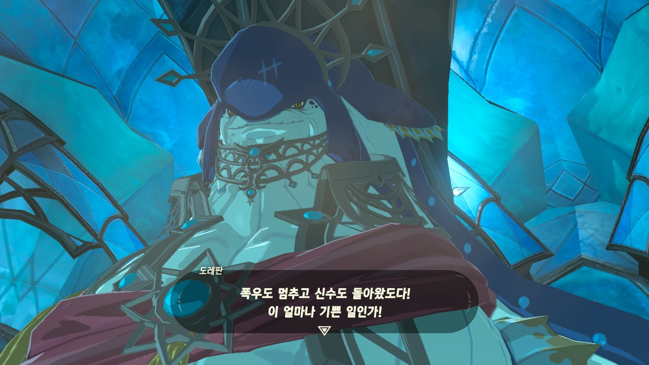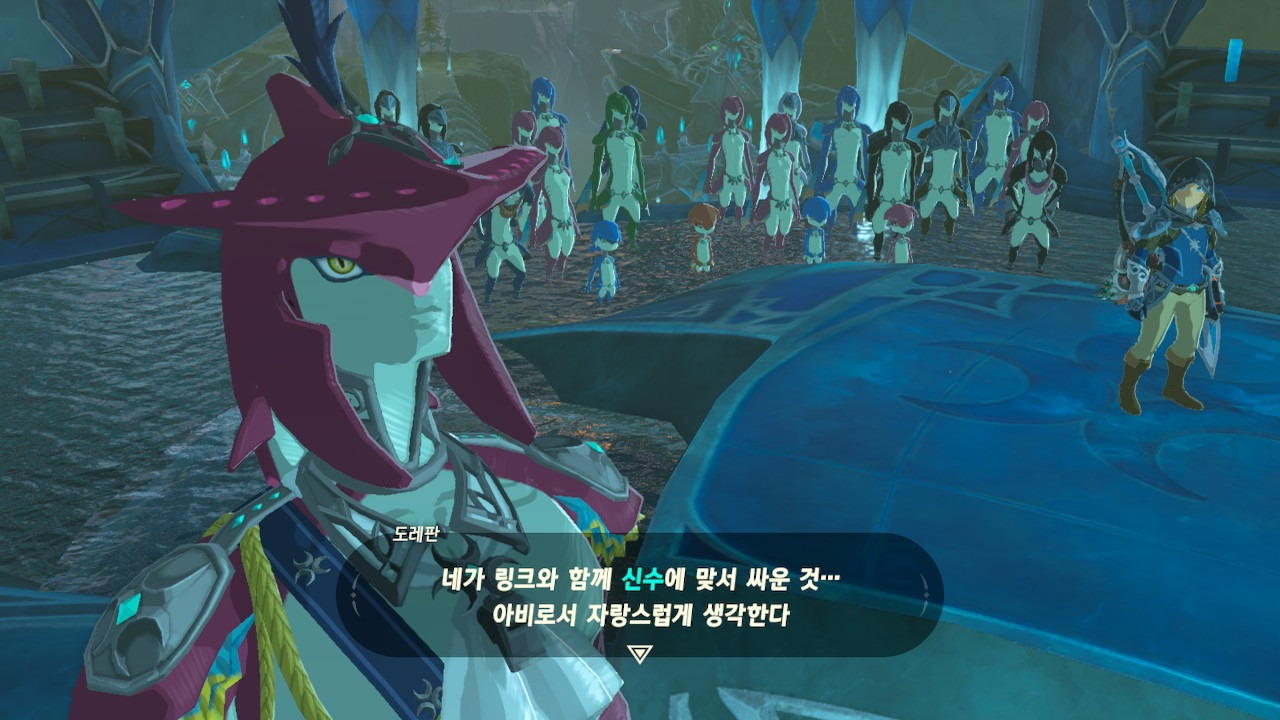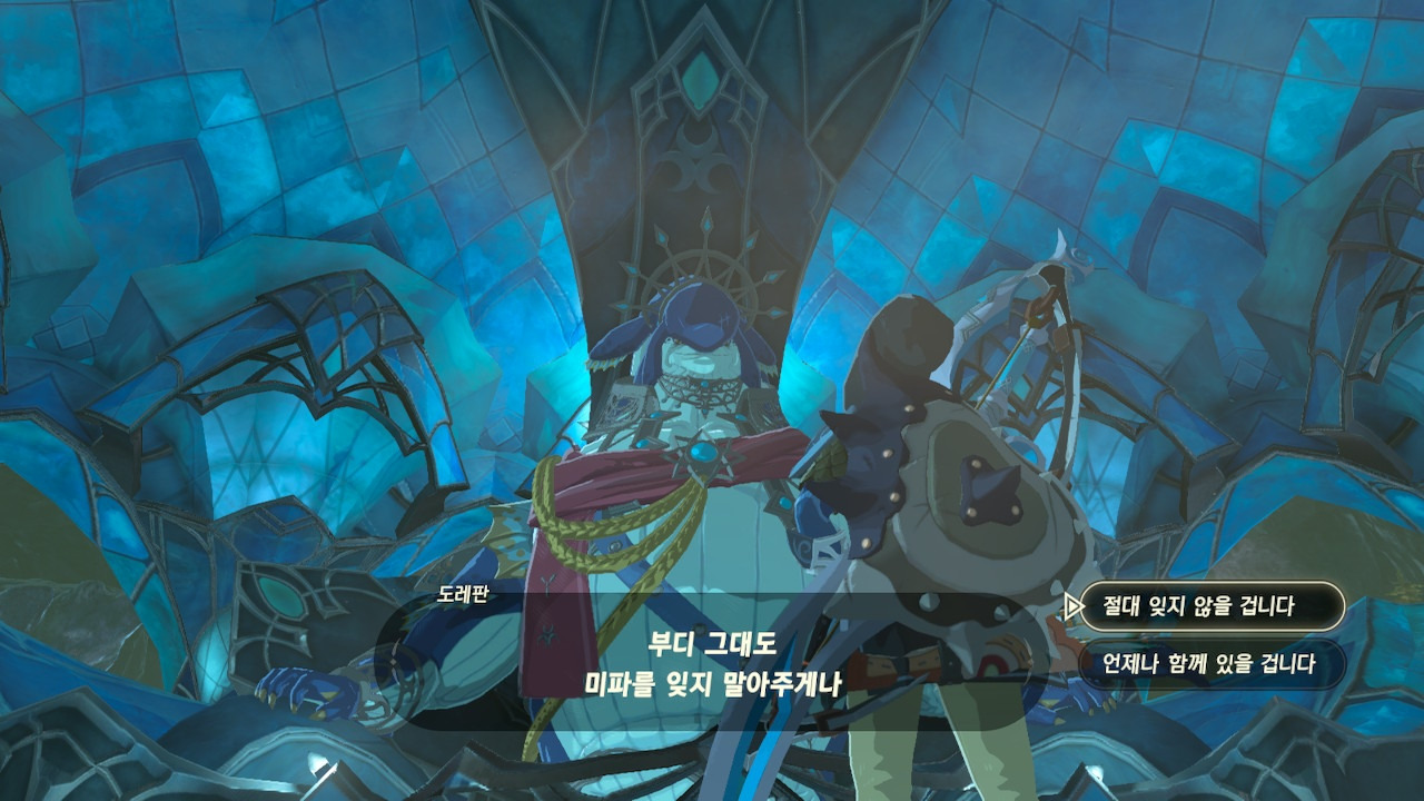 "그런데 링크... 그대에게 묻고 싶은 것이 있네. 그대는 물의 신수 바.루타의 몸에서 무사히 생환했지."