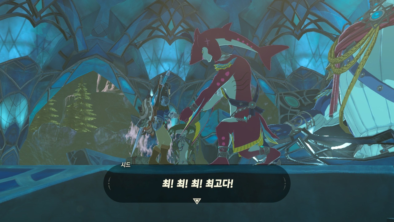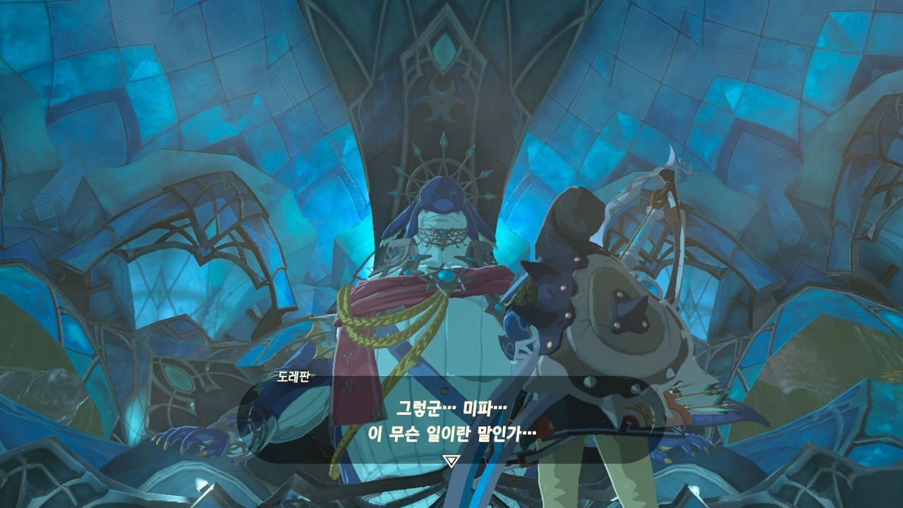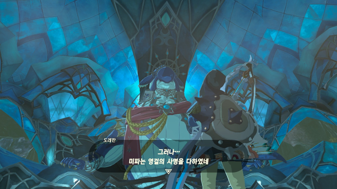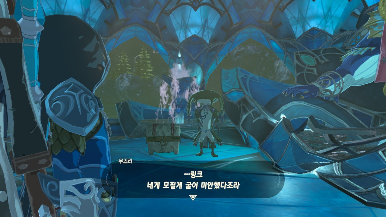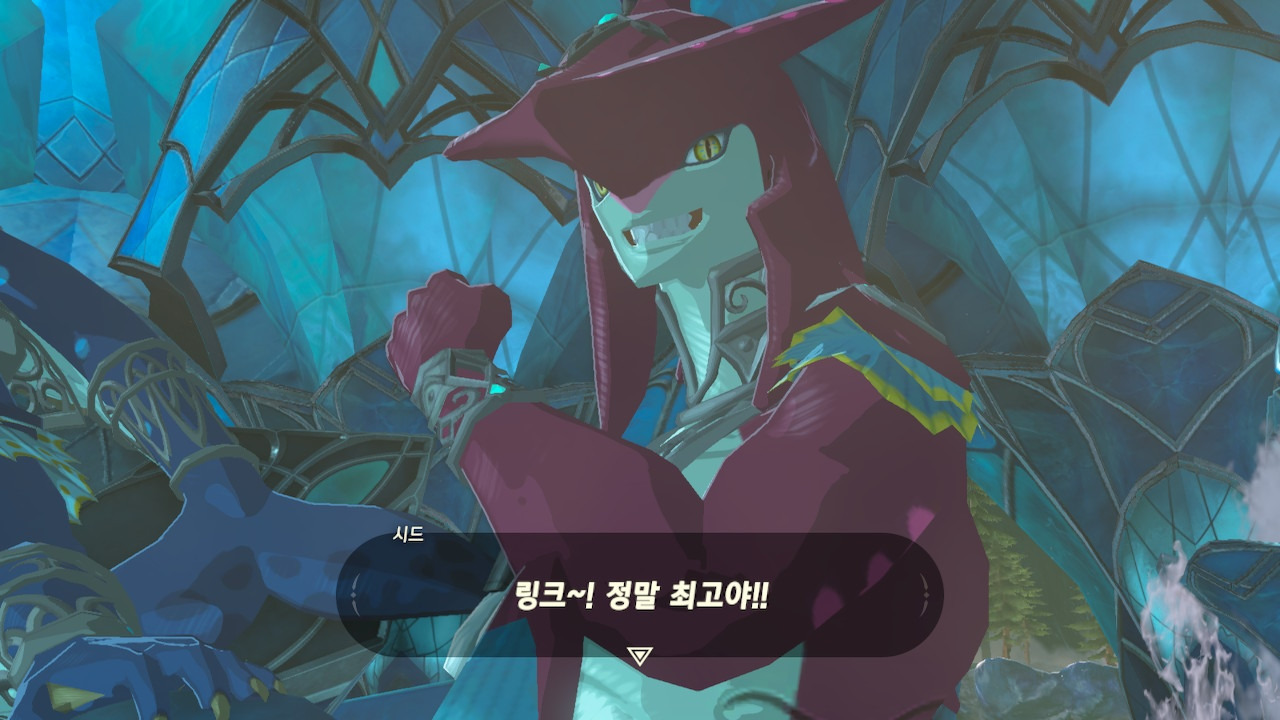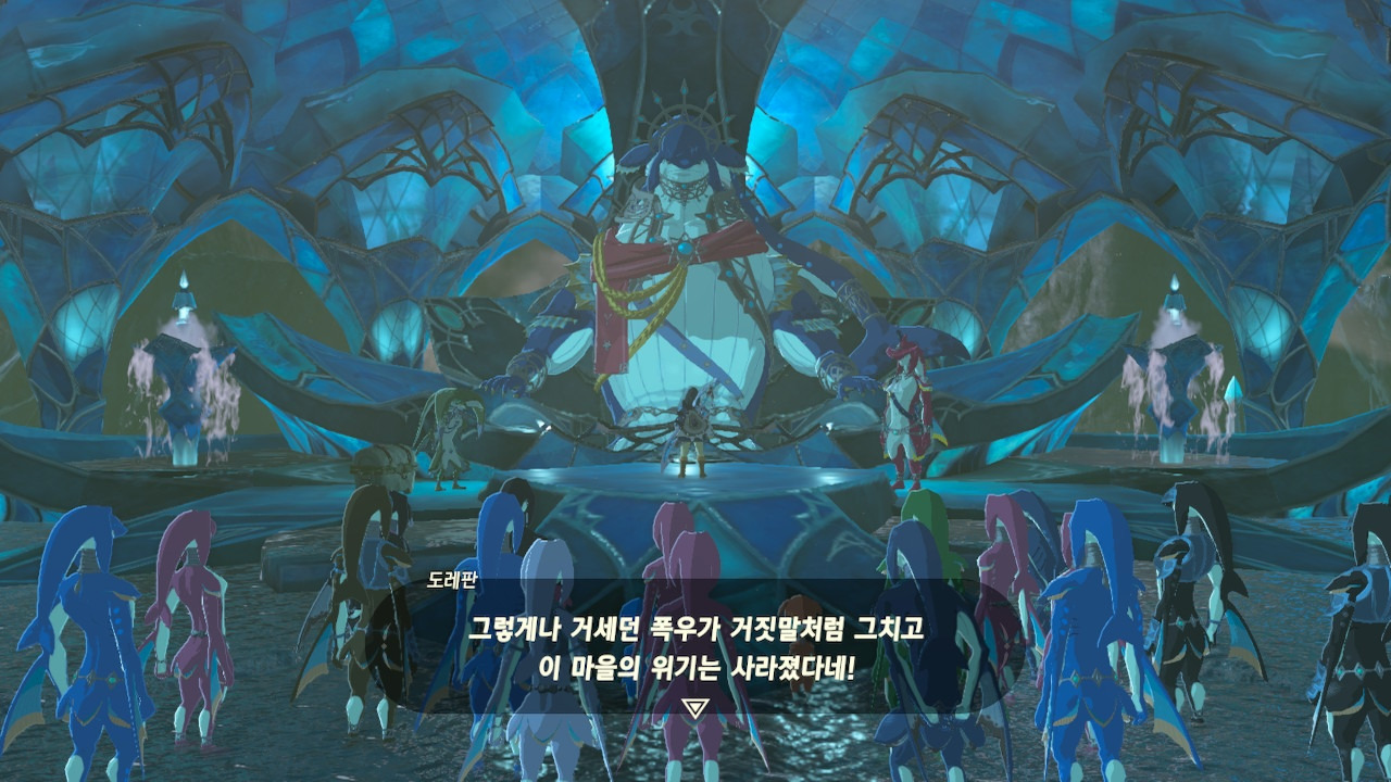 "그런데 링크... 그대에게 묻고 싶은 것이 있네. 그대는 물의 신수 바.루타의 몸에서 무사히 생환했지."