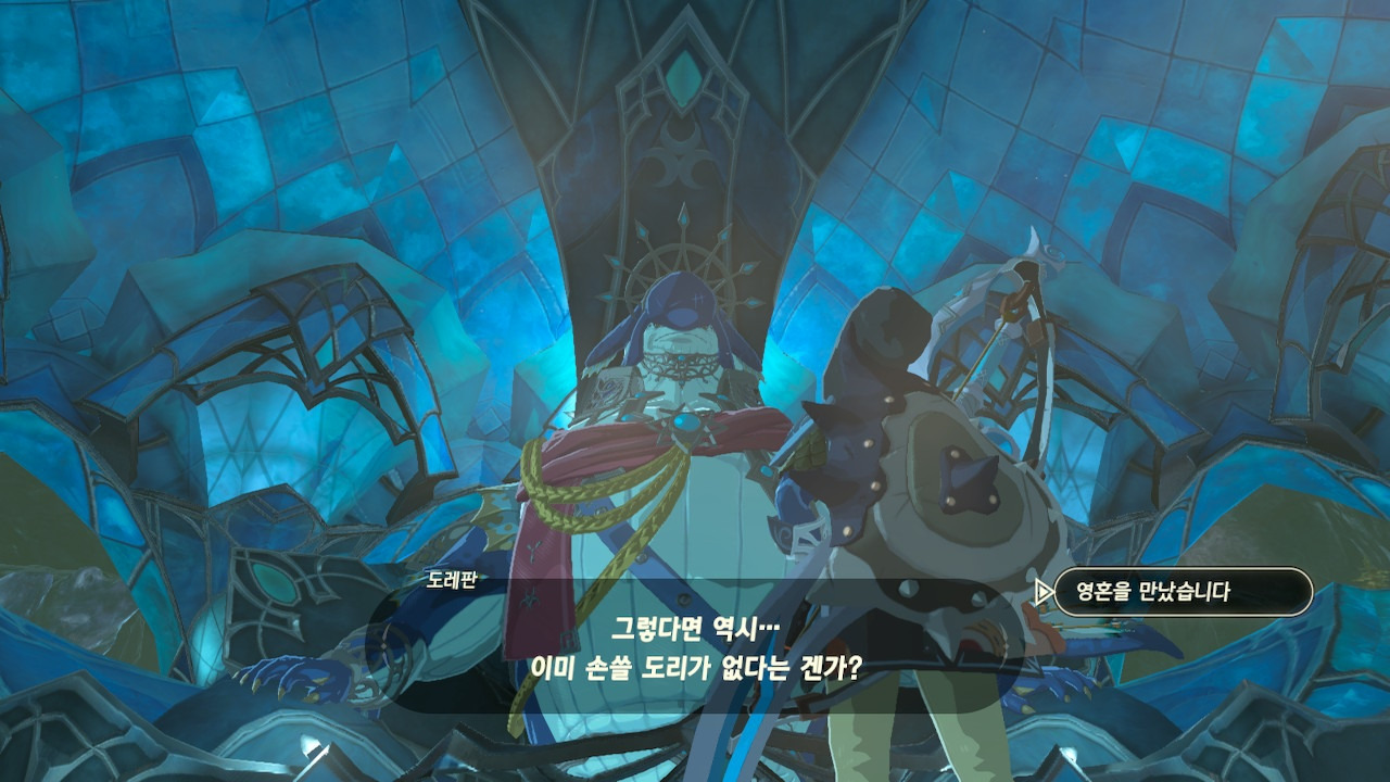 "그리고 제가 신수를 되찾은 후 이곳으로 돌아와야 했을 때, 미파 공주의 또 다른 음성을 들었습니다. 미파 공주는 도레판 왕을 걱정하고 있었습니다. 자신은... 아바마마께 늘 걱정과 폐만 끼쳤다면서... 할 수만 있다면 다시 한번 만나보고 싶었다고 ...."