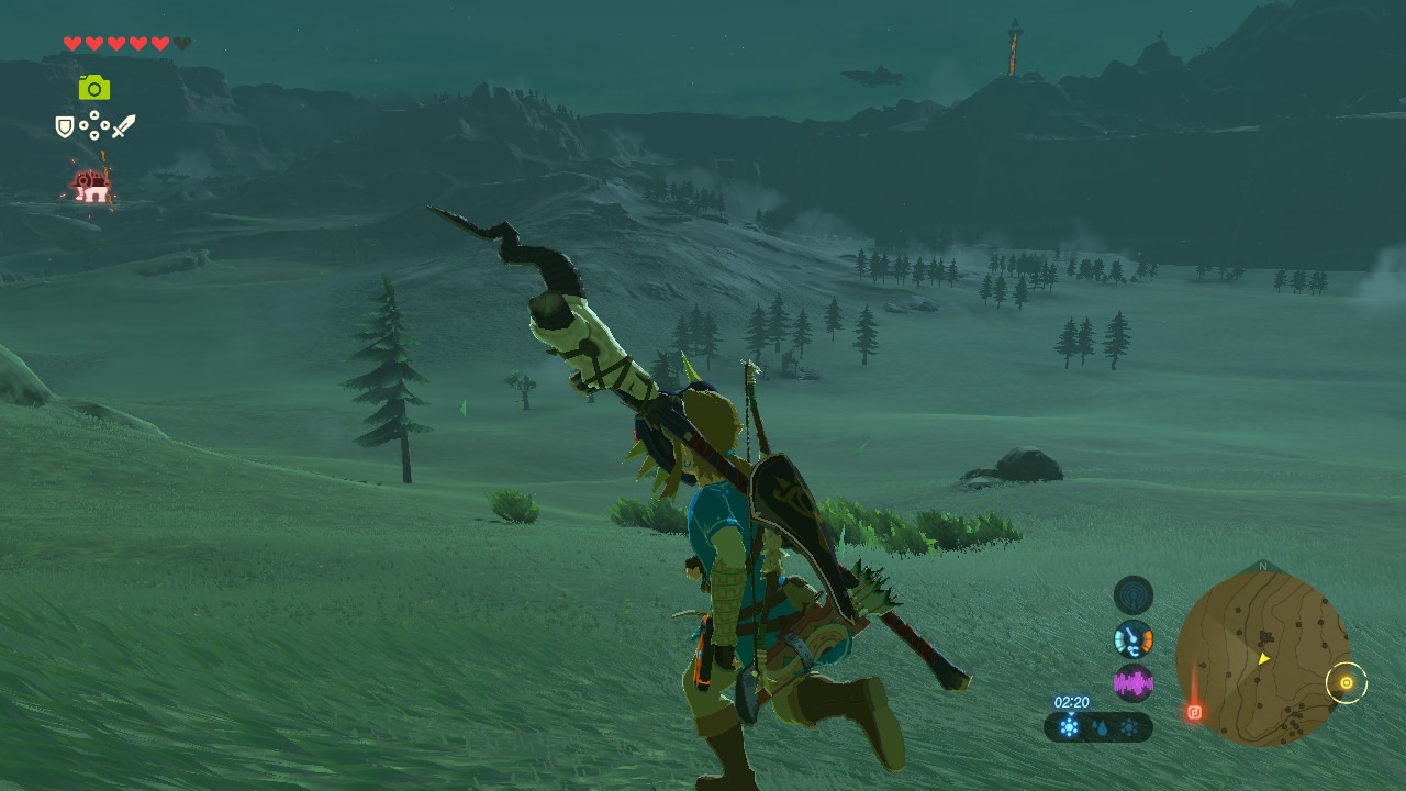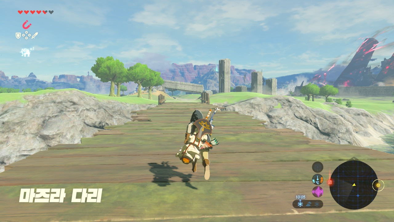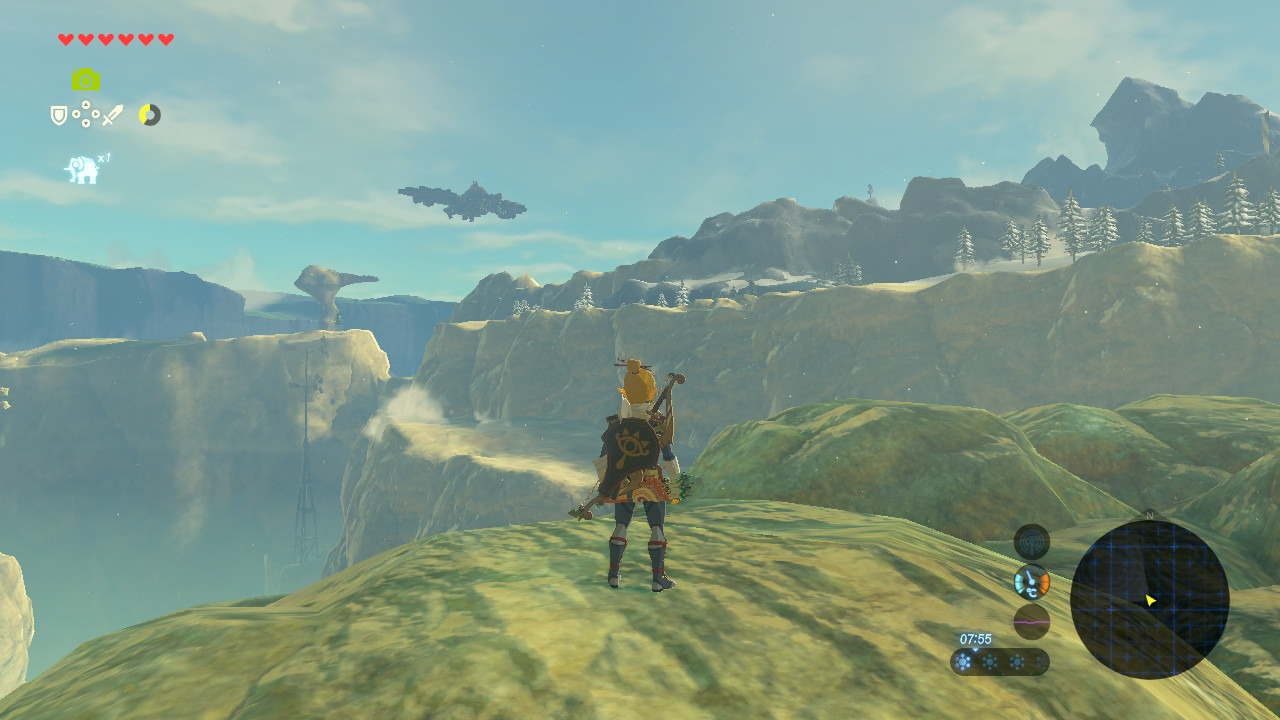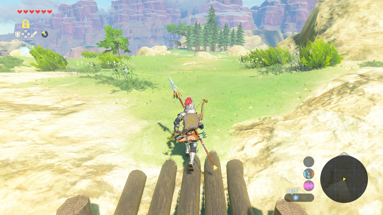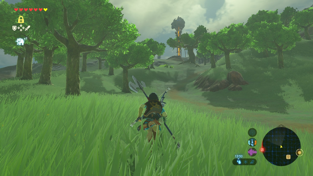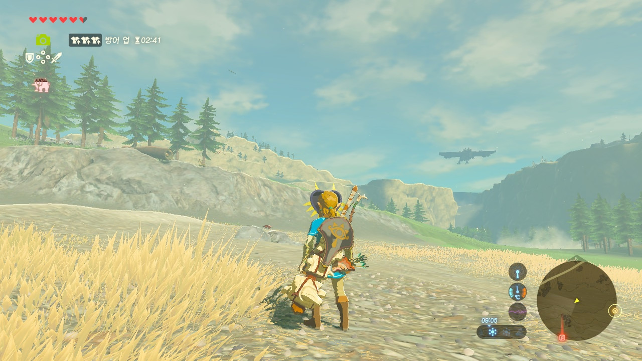 지도를 보니 서쪽 땅이 훨씬 잘 보여서, 나는 서북쪽으로 가기로 마음먹었다. 탑에서 패러세일을 타고 아래로 내려와 착지한 곳은 하이랄 평원의 북쪽.