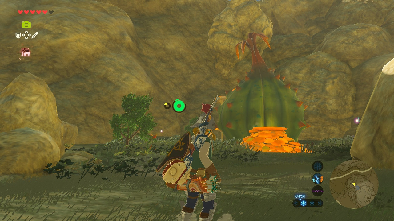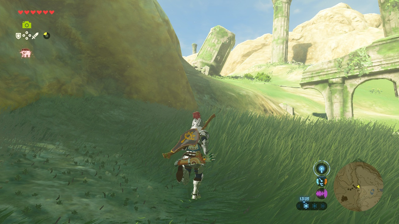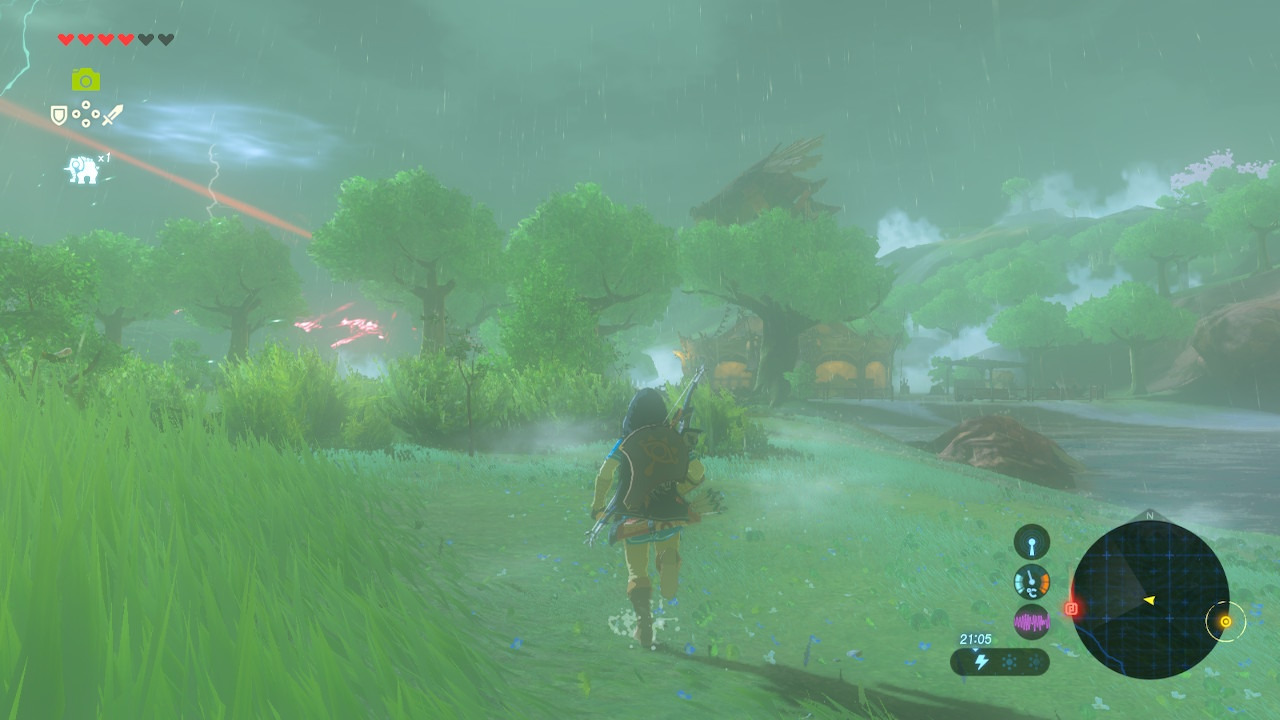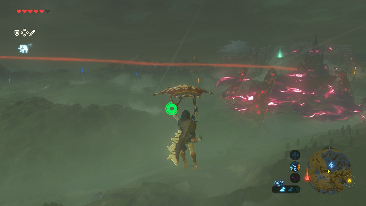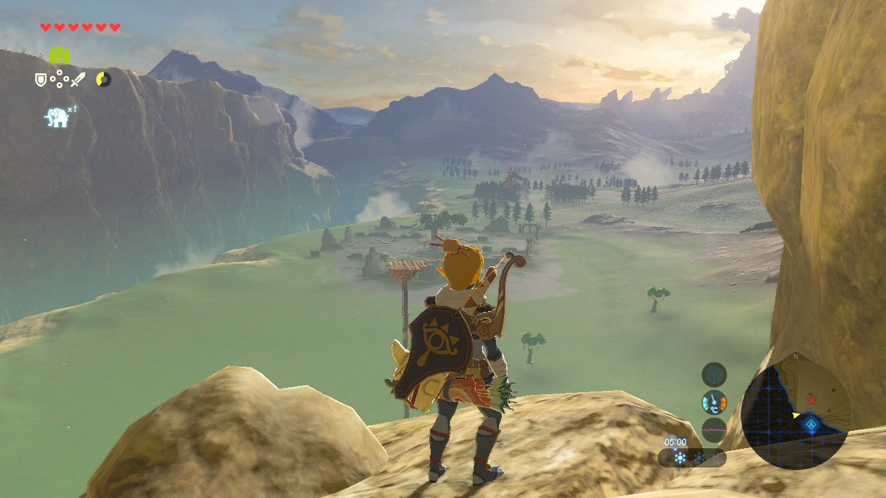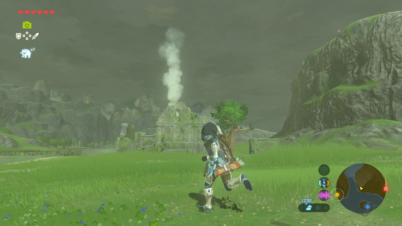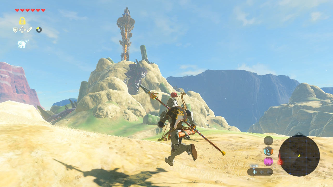 지도를 보니 서쪽 땅이 훨씬 잘 보여서, 나는 서북쪽으로 가기로 마음먹었다. 탑에서 패러세일을 타고 아래로 내려와 착지한 곳은 하이랄 평원의 북쪽.