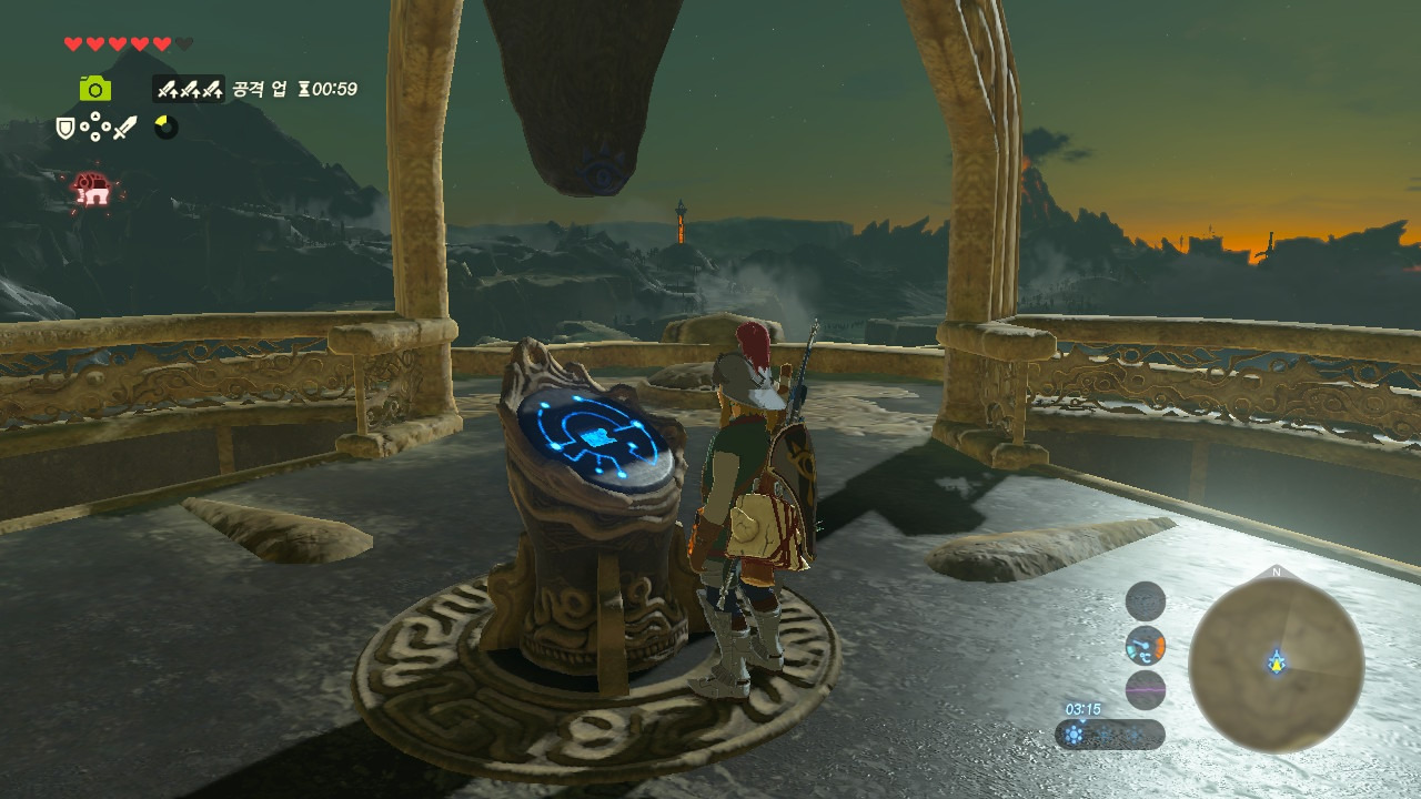 마.노라의 사당에서 나오니 한동안 비가 오지 않을 것 같았다. 그래서 열심히 절벽을 오르고 올랐다. 스테미너 물약을 먹어 가며 절벽을 오르고 나니 아침 해가 떴다. 이렇게 또 밖에서 밤을 샜다.