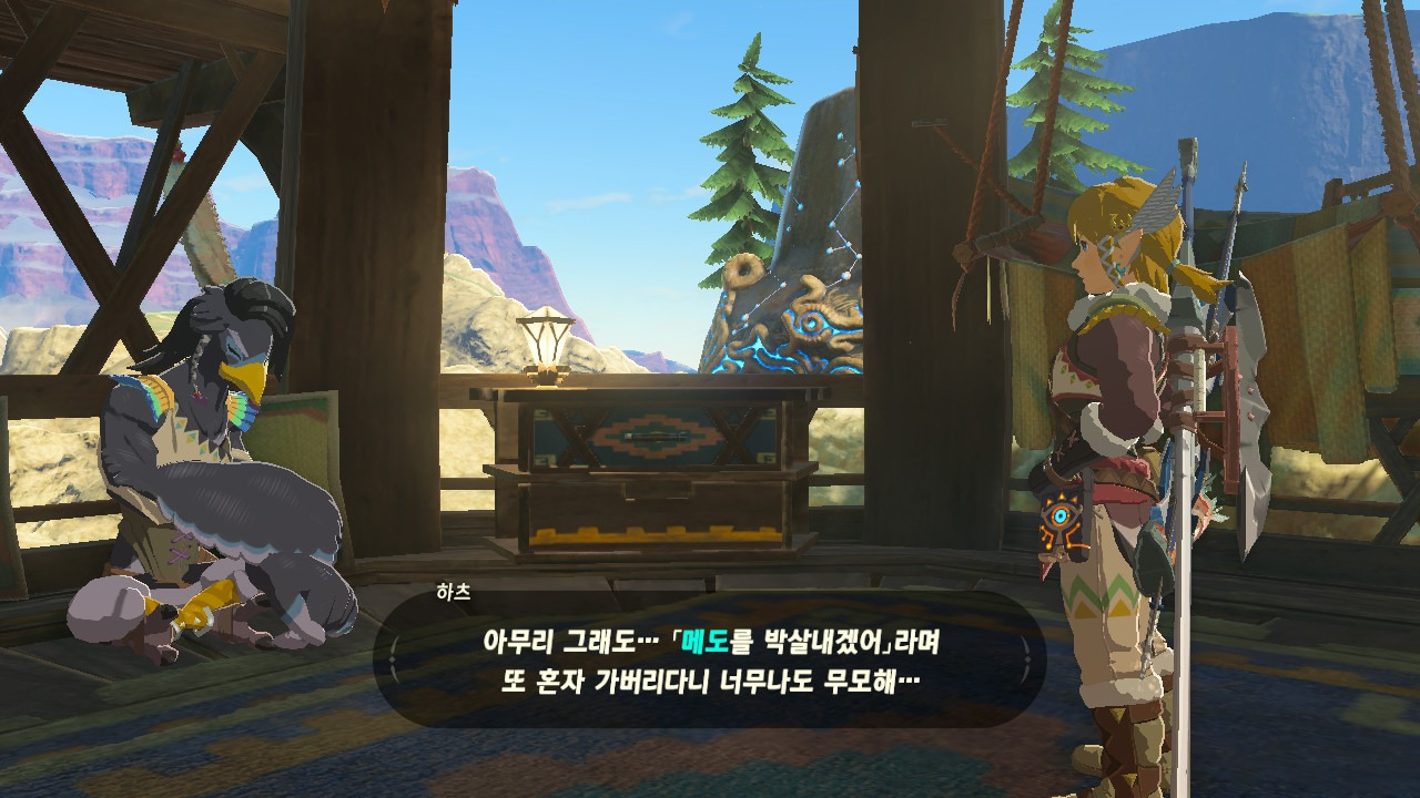 "그곳은 리토의 전사들이 공중전 연습을 하는 곳이죠... 아마 남편은 메도와의 전투에 만전을 기하기 위해 무기를 조달하러 간 것이겠지요..."