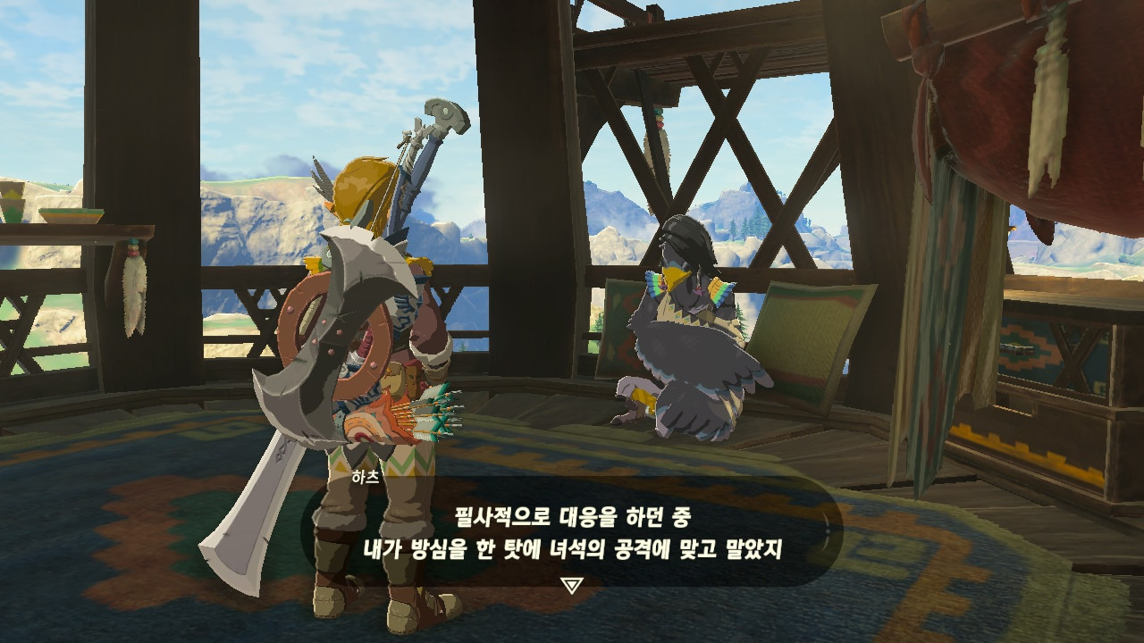 테바라는 전사도 꽤 강한 전사인 것 같았다. 날개를 부상당했다면, 사실 리토족에게 있어서는 가장 치명적인 부위를 다친 셈이라 돌아오기 힘들었을텐데... 그런 하츠를 테바가 데리고 귀환한 것이다. 이야기를 듣다 보니 하츠와 테바에 대해 더 궁금해졌다. 돈독해 보이는 전우 사이인 것 같기도 하고... 그래서 나는 하츠 자신에 대해 물어보았다.