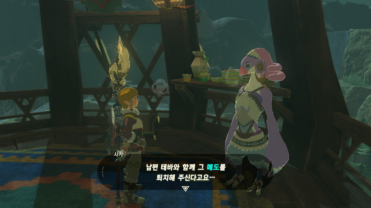 "남편 테바와 함께 그 메도를 퇴치해 주신다고요...하지만 제가 도와드릴 수 있는 건 남편이 어디로 갔는지 알려드리는 것 밖엔..."