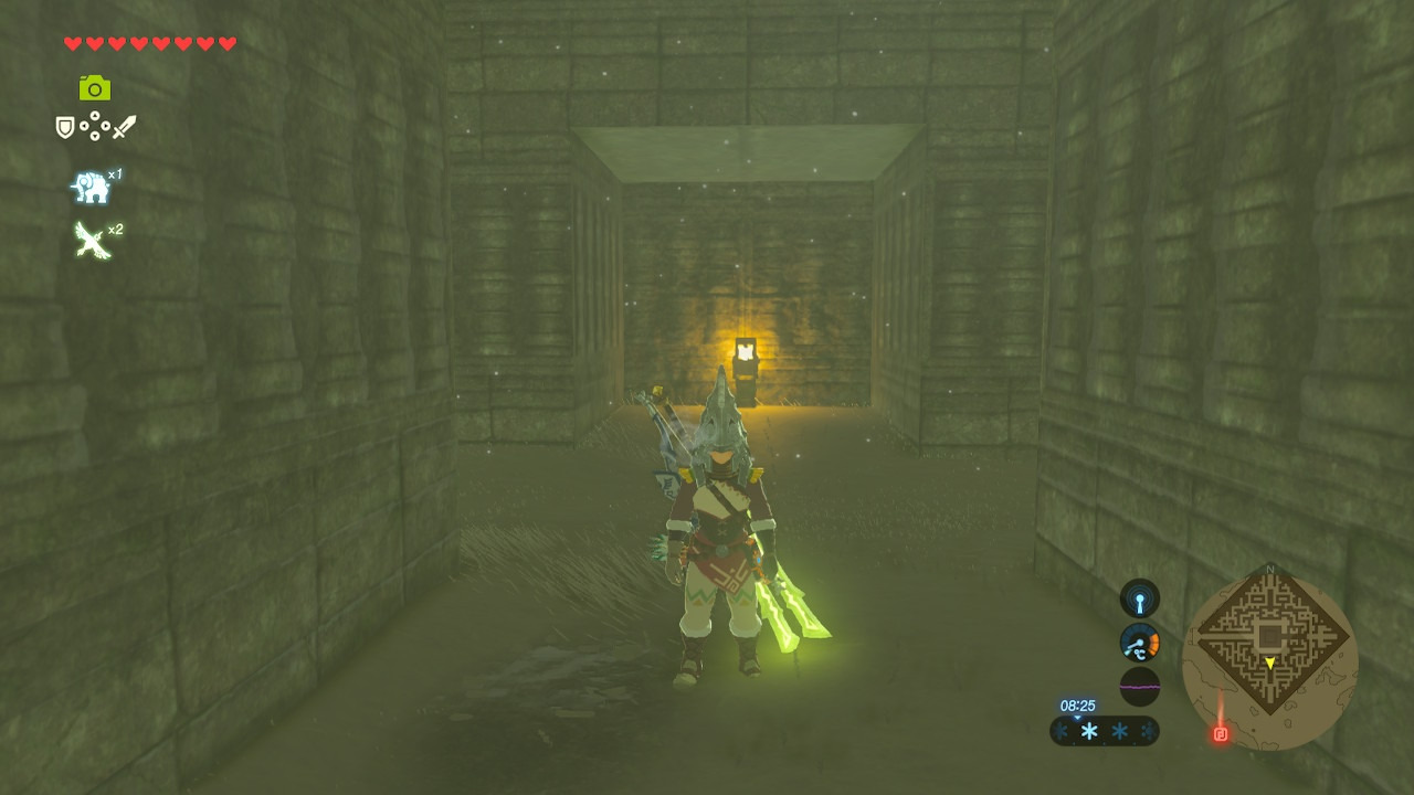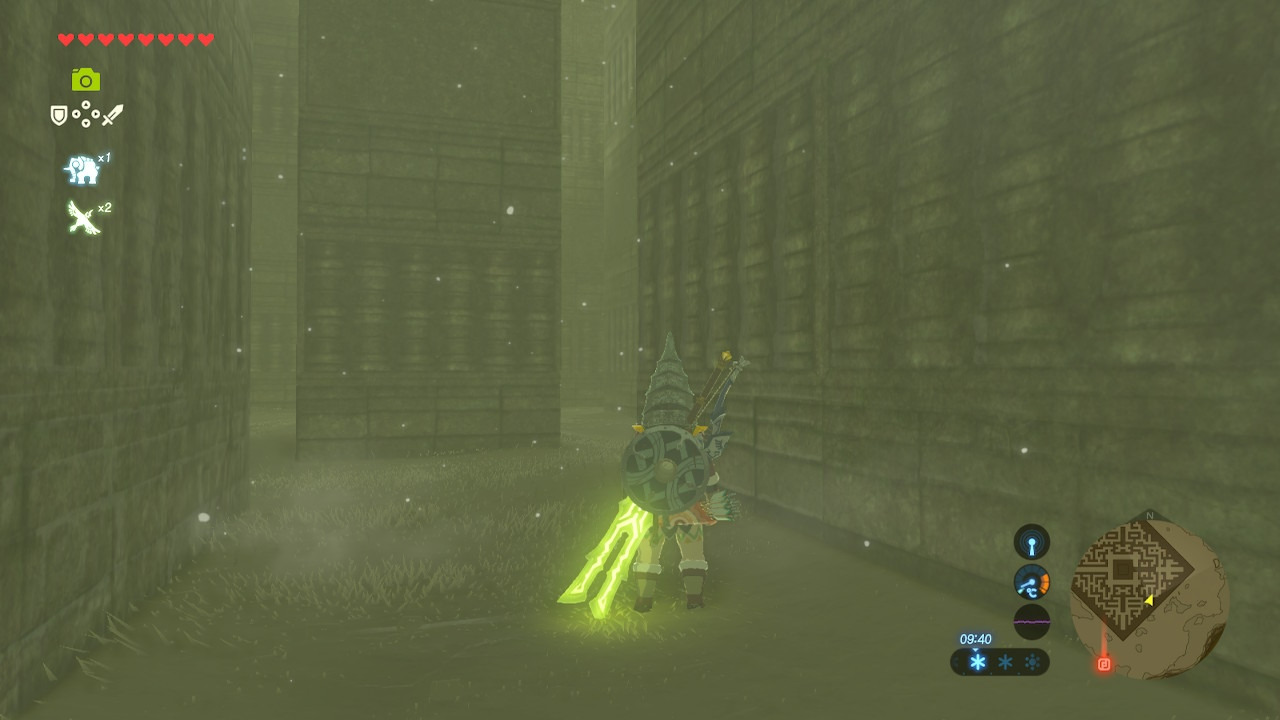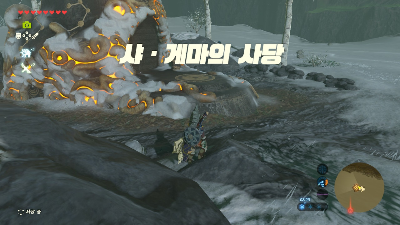 나는 무사히 라이넬의 눈을 피해 커다란 유적 주변에 있는 사당을 찾았다. 이 사당은 샤.게마의 사당으로 금속 상자를 이리저리 움직여서 상승하는 길로 올라가야 하는 퍼즐이 있는 곳이었다. 상자에서 열쇠를 하나 찾아야 하는데, 그 때 타임록을 재빨리 써야 하는 기술이 필요한 사당이었다.