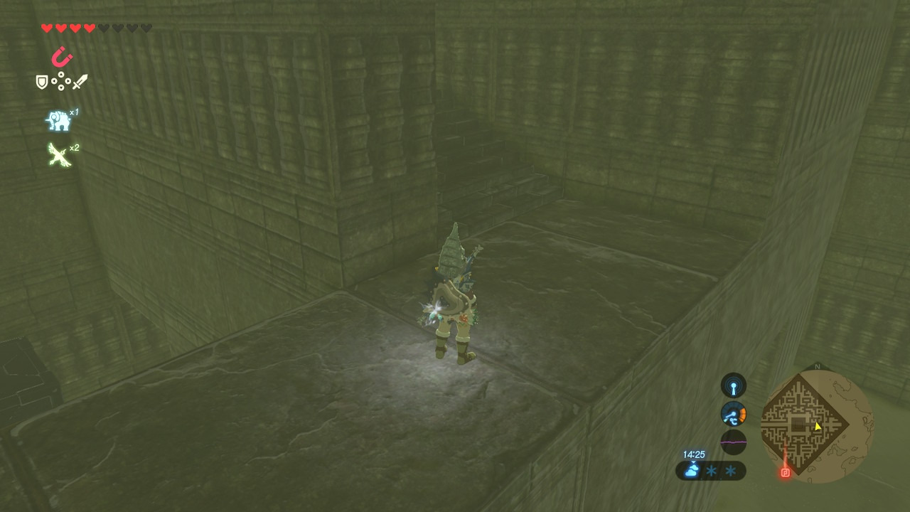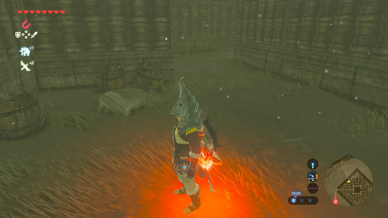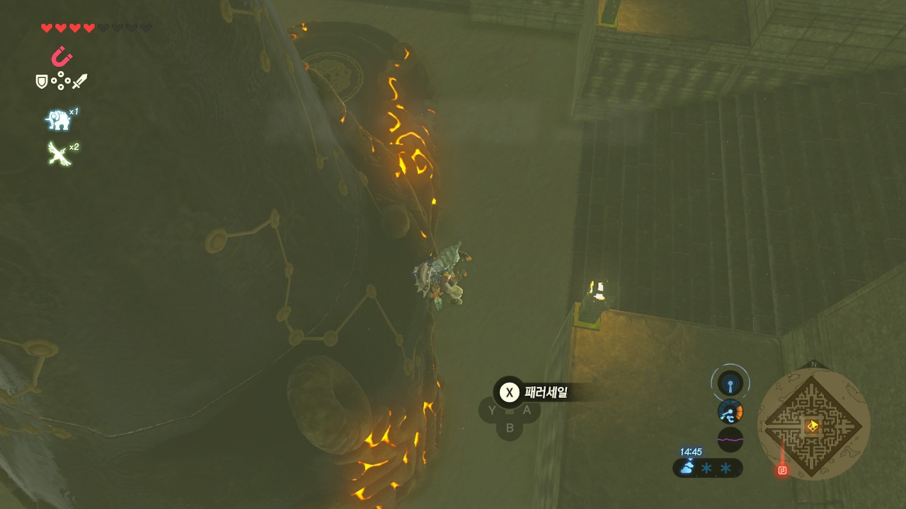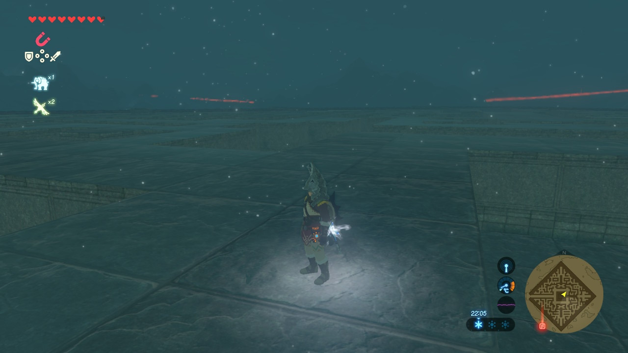 나는 무사히 라이넬의 눈을 피해 커다란 유적 주변에 있는 사당을 찾았다. 이 사당은 샤.게마의 사당으로 금속 상자를 이리저리 움직여서 상승하는 길로 올라가야 하는 퍼즐이 있는 곳이었다. 상자에서 열쇠를 하나 찾아야 하는데, 그 때 타임록을 재빨리 써야 하는 기술이 필요한 사당이었다.