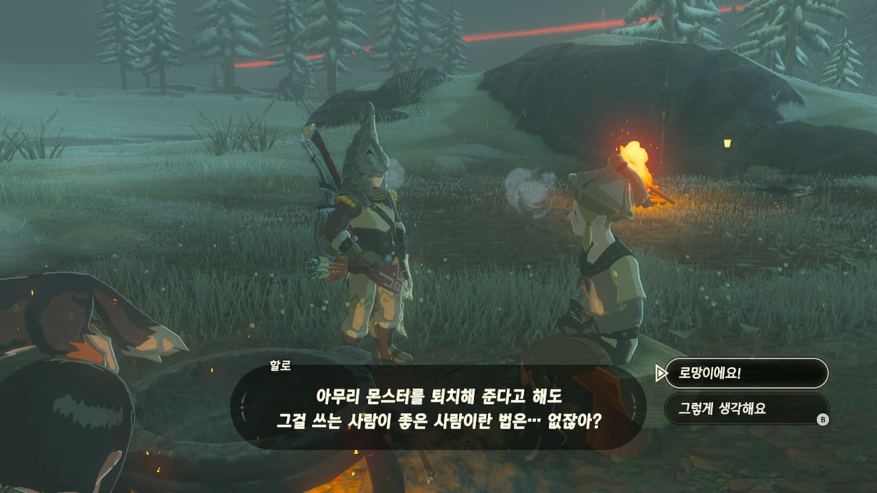 할로라는 사람은 나같은 무기 들고 다니는 사람은 덮어놓고 나쁘게 보는 걸까? 몬스터는 퇴치해야 사람들이 편안하게 살지 않나? 흠... 나는 할로의 생각과는 반대라서, 이렇게 말했다.