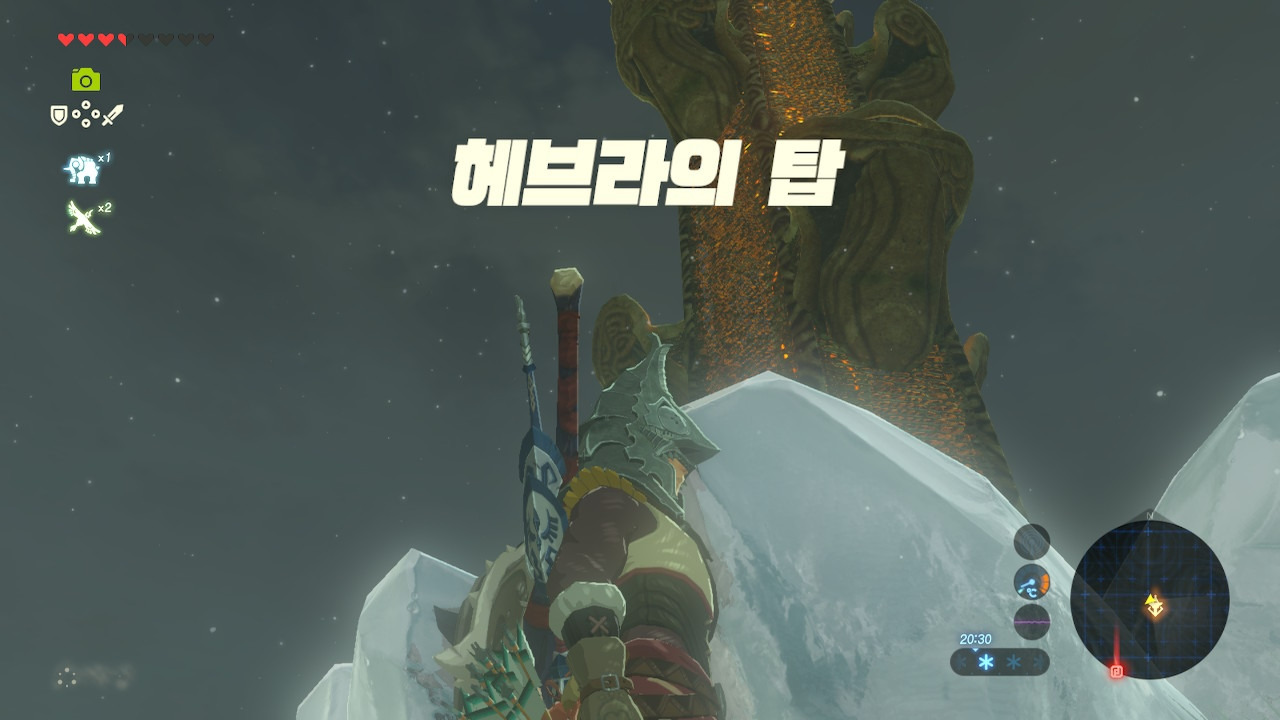 헤브라의 탑은 올라가는 입구가 모두 얼음으로 막혀 있었다. 나는 마침 화염의 대검을 가지고 있어서, 대검을 휘둘러 가며 얼음을 녹였다. 생각보다 빨리 녹아서, 그렇게 어렵지 않게 탑을 오를 수 있었다.