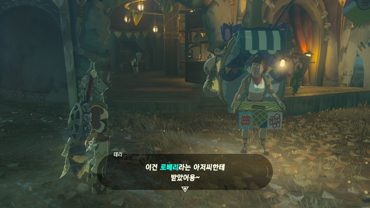 "이건 로베리라는 아저씨한테 받았어용~ 조라의 마을에서 북쪽으로 쭉 가면 있는 추낙 고대 연구소라는 곳에 계셔용~"