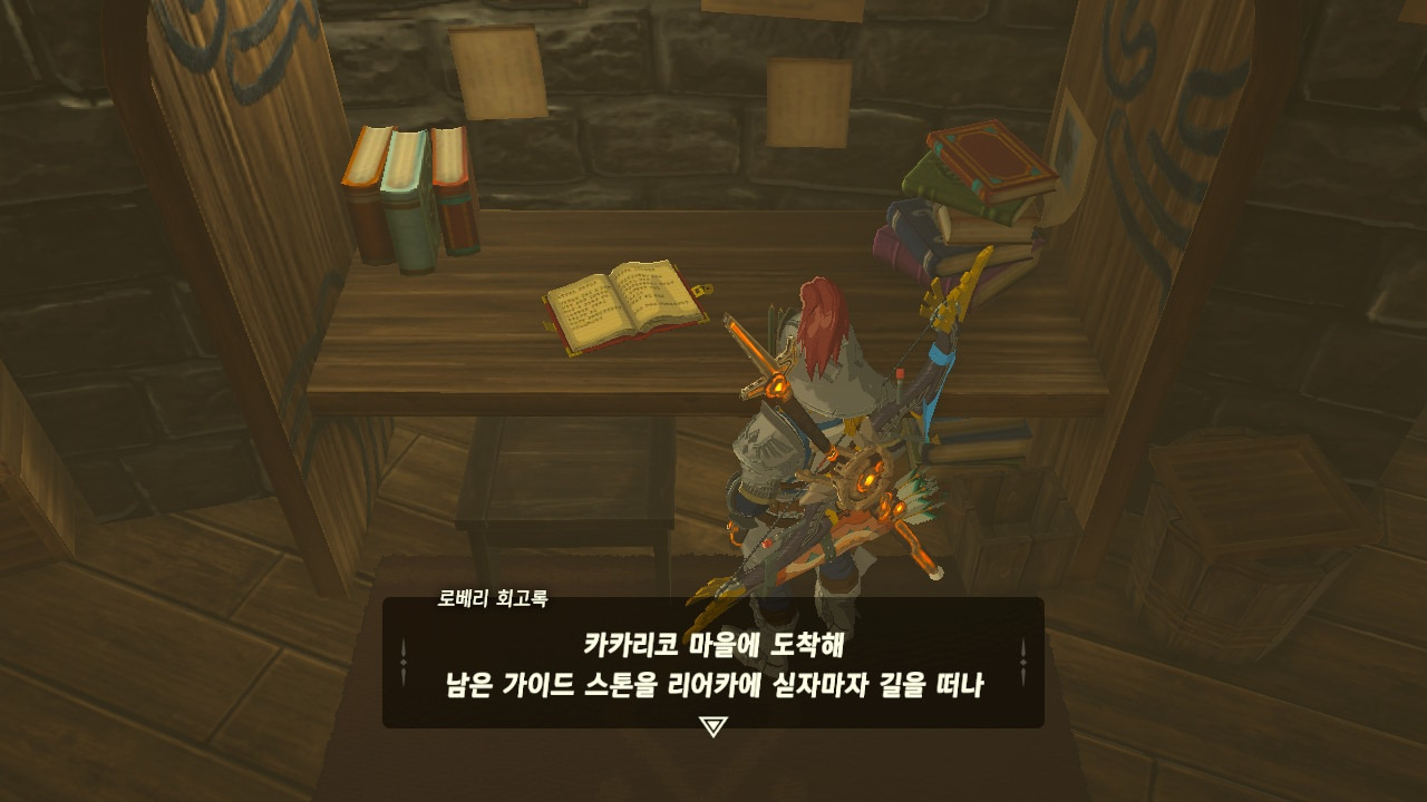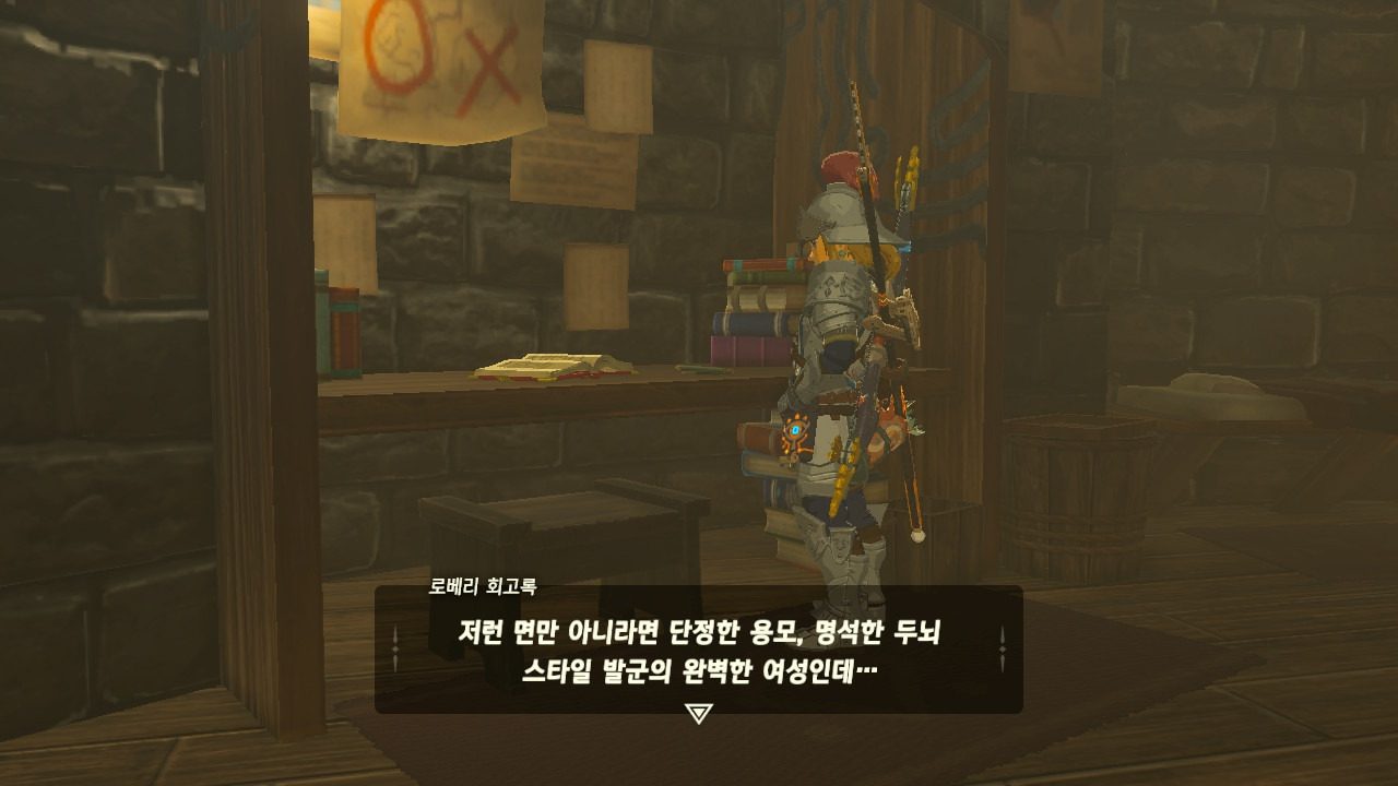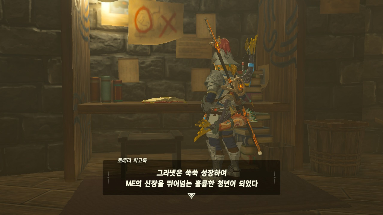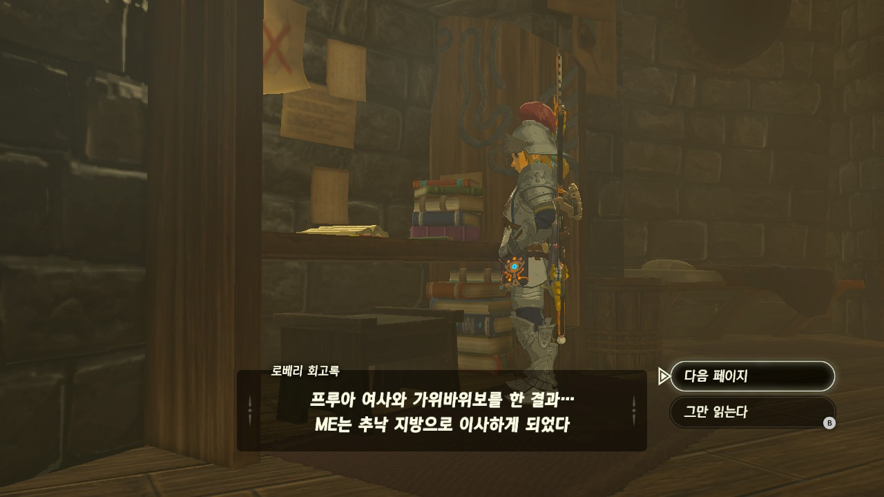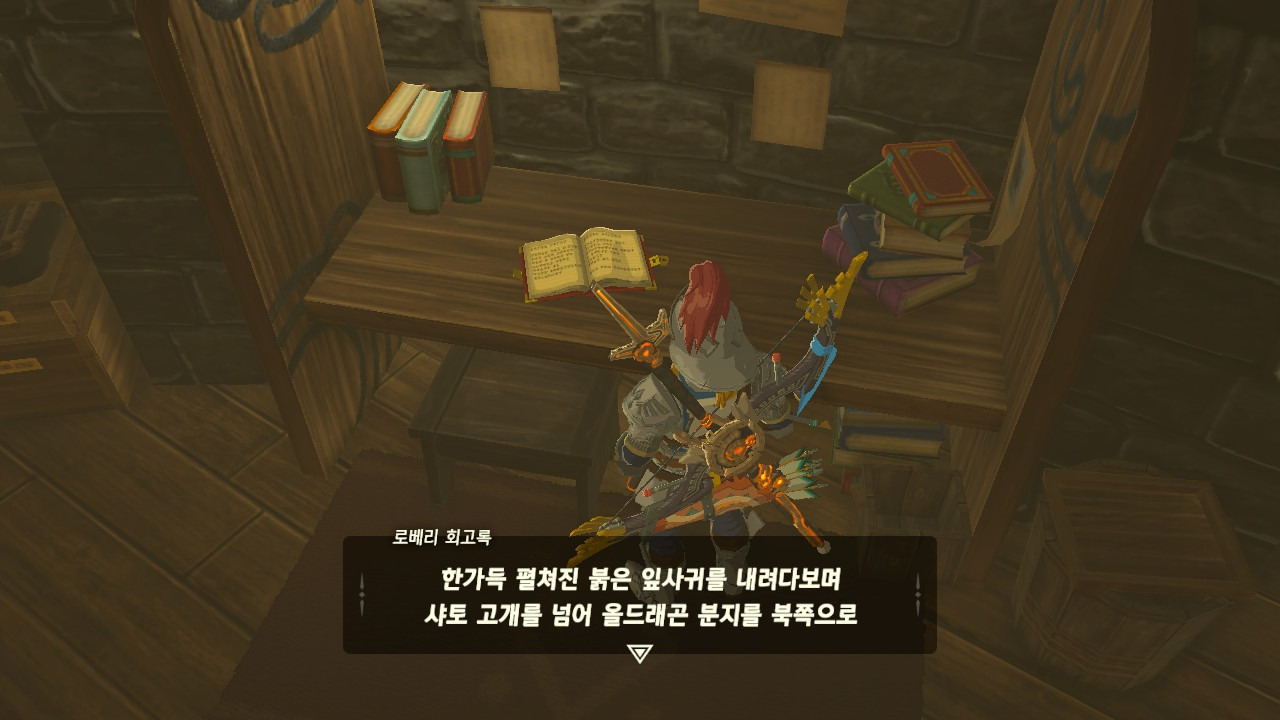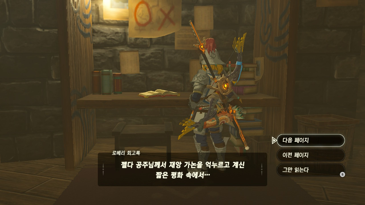 로베리에겐 이 추낙 연구소가 더 없이 소중한 장소가 되었다. 그 참담했던 재앙 가논의 역습 이후, 그는 가정을 꾸렸고 ... 사랑하는 아이도 무럭무럭 자랐고... 소중한 것을 더욱 지키고 싶었을 것 같은... 그래서 젤다 공주를 생각했을 것이고... 지금도, 재앙 가논의 토벌을 위해 나를 돕겠다고 하는 것이리라....