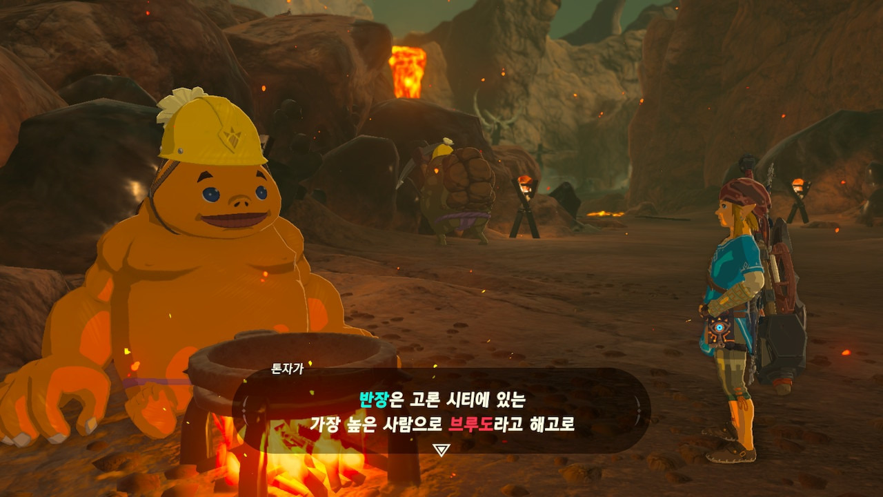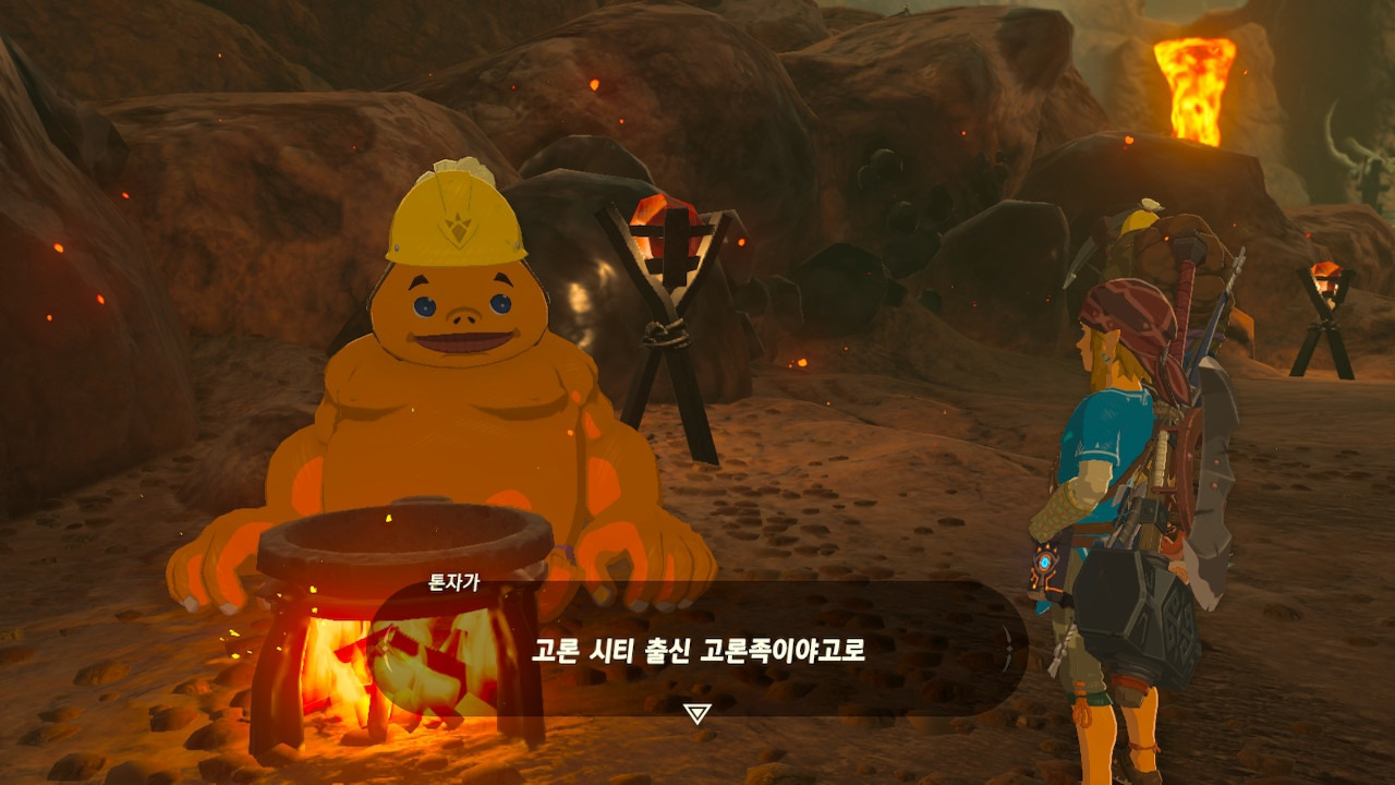 요리 냄비 앞에서 쉬고 있는 한 고론족이 있어 말을 걸어보았다. 그의 이름은 톤자가였는데, 그는 피곤하다면서 한숨을 쉬었다. 자기 이름을 알려 준 그는 고론 시티에서 왔다고 했다.
