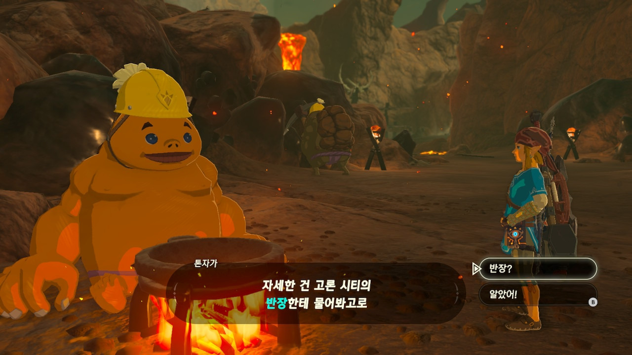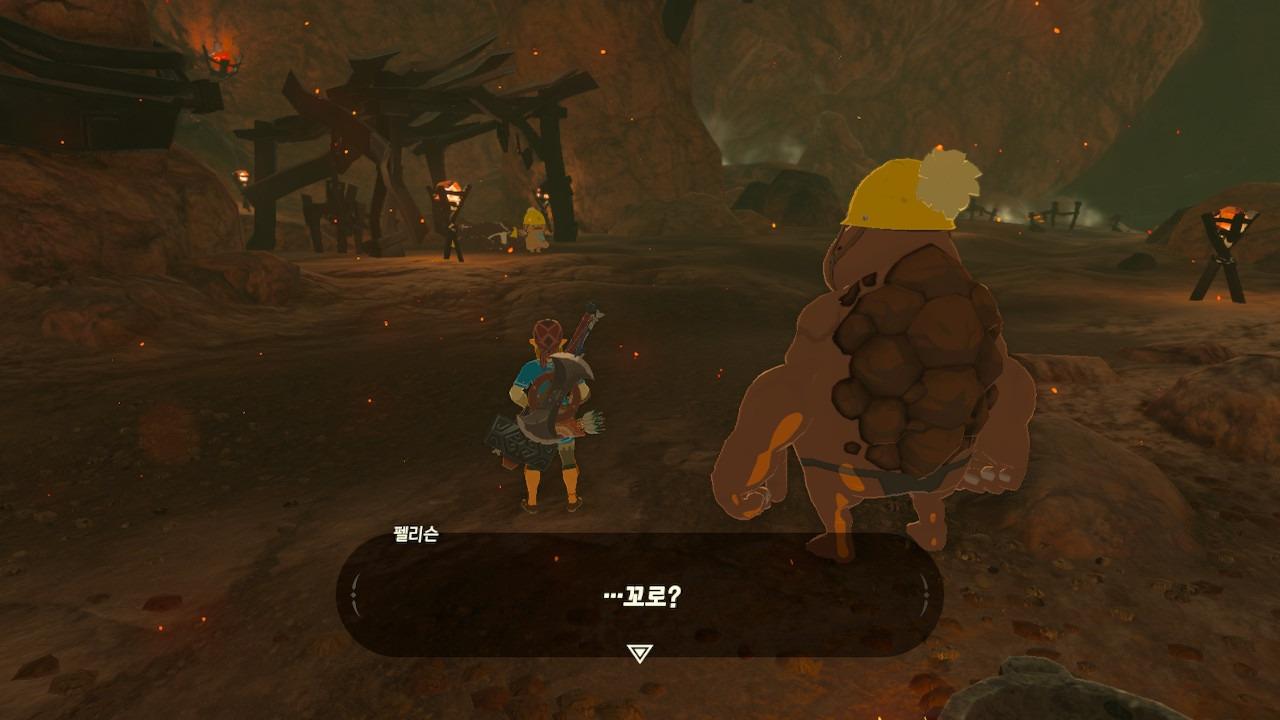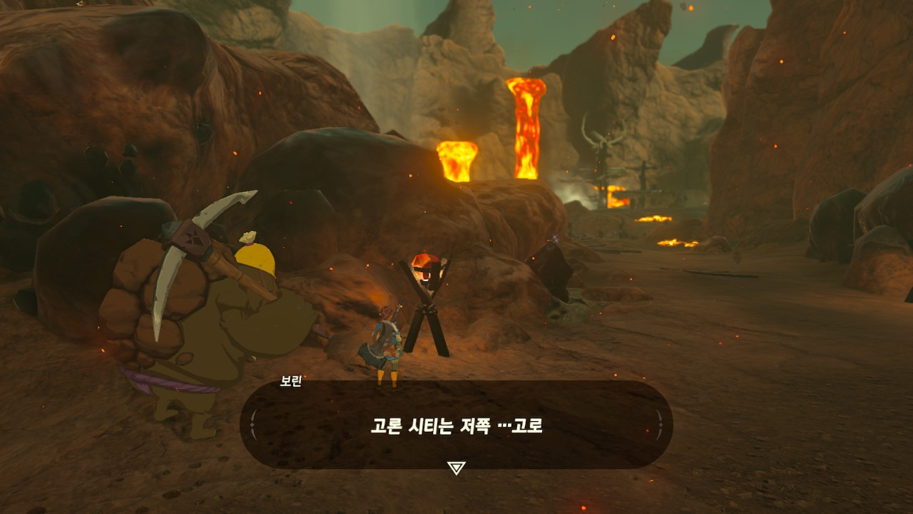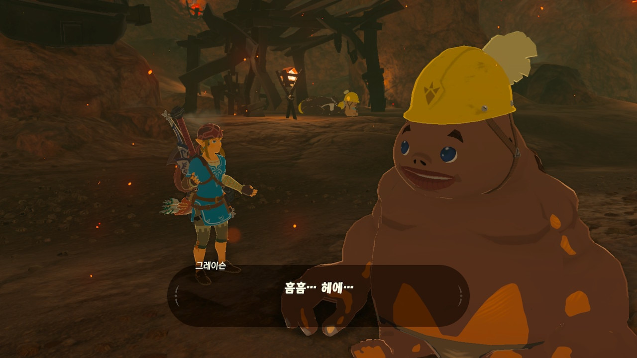 "... 하지만 지금은 데스마운틴 정상에 도마뱀 괴물이 눌러앉아 버려서 ... 원랜 산 정상 근처에서 더 좋은 광석을 캘 수 있는데... 여기서 채굴하고 있어고로."