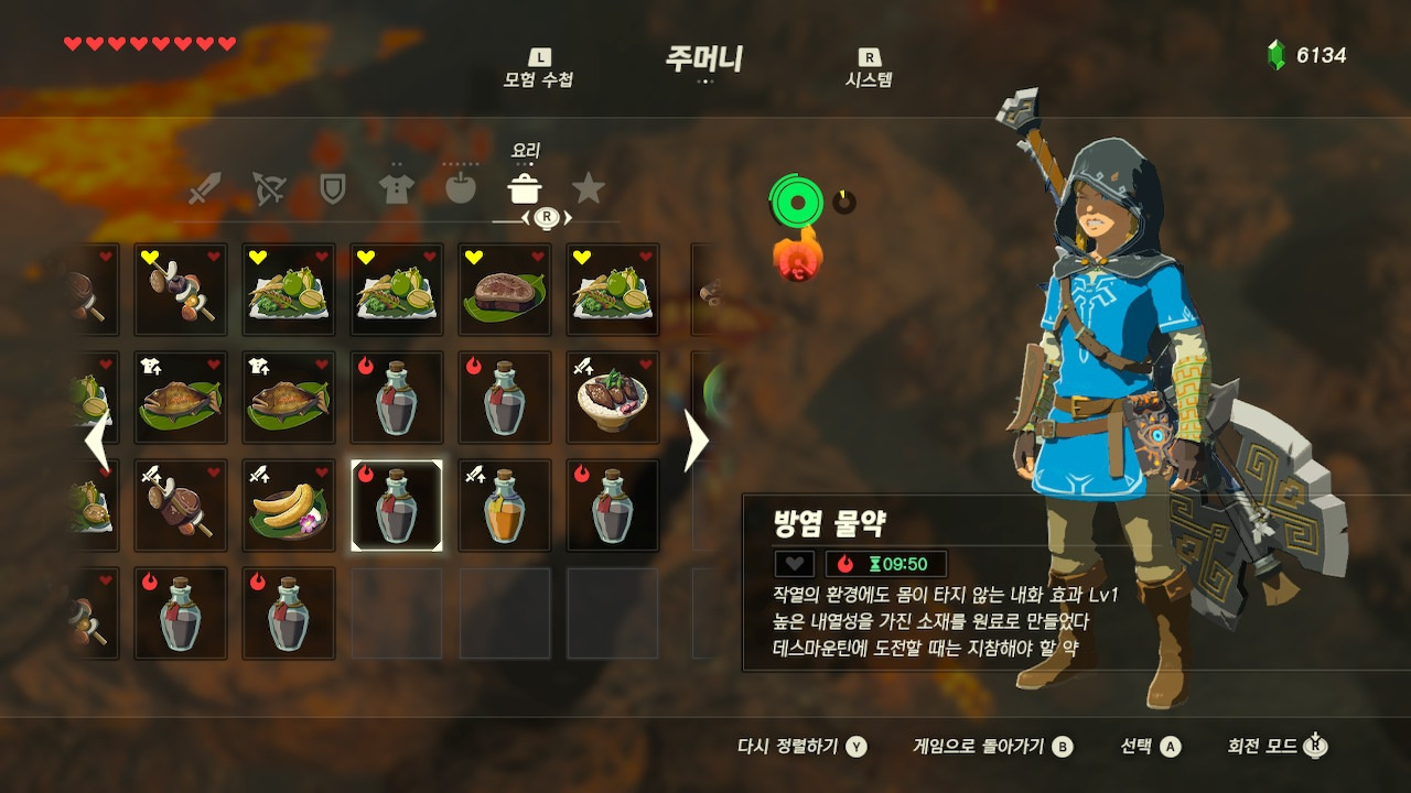 북쪽 방향을 향해서 계속 길을 올랐다. 용암이 끓는 지대여서 그런지 츄츄들도 모두 빨갛게 타오르고 있었다. 가까이 터뜨리면 내게도 데미지가 전해지니 조심해야했다. 그래서 화살을 꺼냈는데, 꺼내자마자 화살촉 주변에 불이 붙어 깜짝 놀랐다. 이 정도로 뜨겁다니... 시커 스톤을 열어보고 알았는데, 나무로 된 무기나 방패도 연기가 나고 있었다. 이 지역에서는 나무로 된 무기나 활, 방패는 사용 금지인 셈이다.