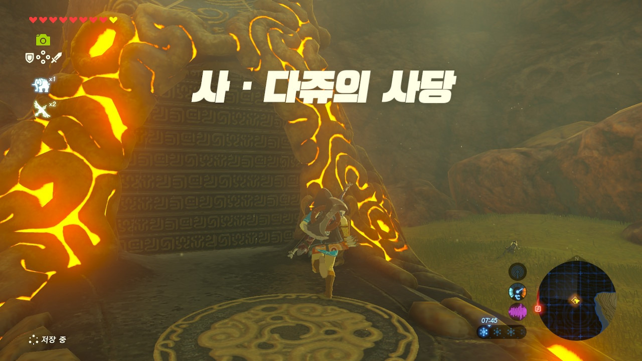 '사.다쥬의 사당'은 불꽃을 이용해 불을 붙여야 하는 퍼즐이 있었다. 중간급 가디언도 한 개 있어서 처지해야 했는데, 사당 안에서 마주치는 가디언들은 ... 이제는 무기를 얻을 수 있는 소중한 자원처럼 느껴진다.