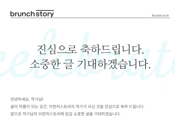 당당히 1차로 합격이 되었다. 나를 '작가'라 불러주며, 브런치스토리에서 담길 소중한 글을 기대하겠다고 한다.
