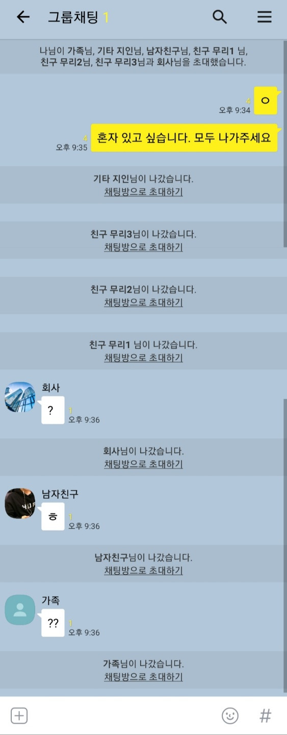 적성을 고려하지 않은 대기업 사원이란 타이틀, 당연하게 수행하온 착한 딸이란 역할, 연애와 데이트라는 관습화 된 활동을 별 다른 감상 없이 행하고 있던 연애 인구로써의 생활, 술자리마다 꼭 부르고 싶을 정도로 쾌활한 친구라는 포지션들에 '일방적 결별 선언'을 한 것도 이와 같은 맥락에서였다. 비유를 하자면 사람들로 북적거리는 연회장에서 파티 호스트가 별안간 무대 위로 뛰쳐 올라가 마이크를 움켜쥐고 "저기요, 다들 나가주세요. 혼자 있고 싶습니다"라며 한때 인터넷에 유행하던 짤을 연상시키는 상황을 그대로 인생에서 연출한 것이다.