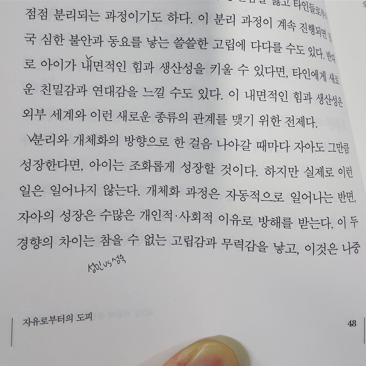 에리히 프롬의 <자유로부터의 도피>를 읽다 보면, 육체적인 ‘성인’ 됨과 정신적인 ‘성숙’의 차이가 어디서 기인하는지 정확한 개념으로 기술해 놓은 것을 발견할 수 있다.